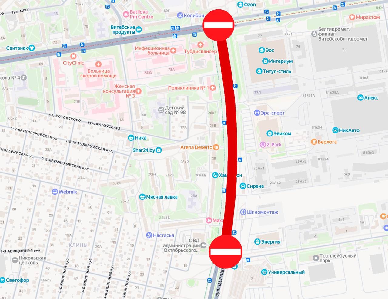 Вечером 13 апреля в Витебске перекроют участок улицы Терешковой