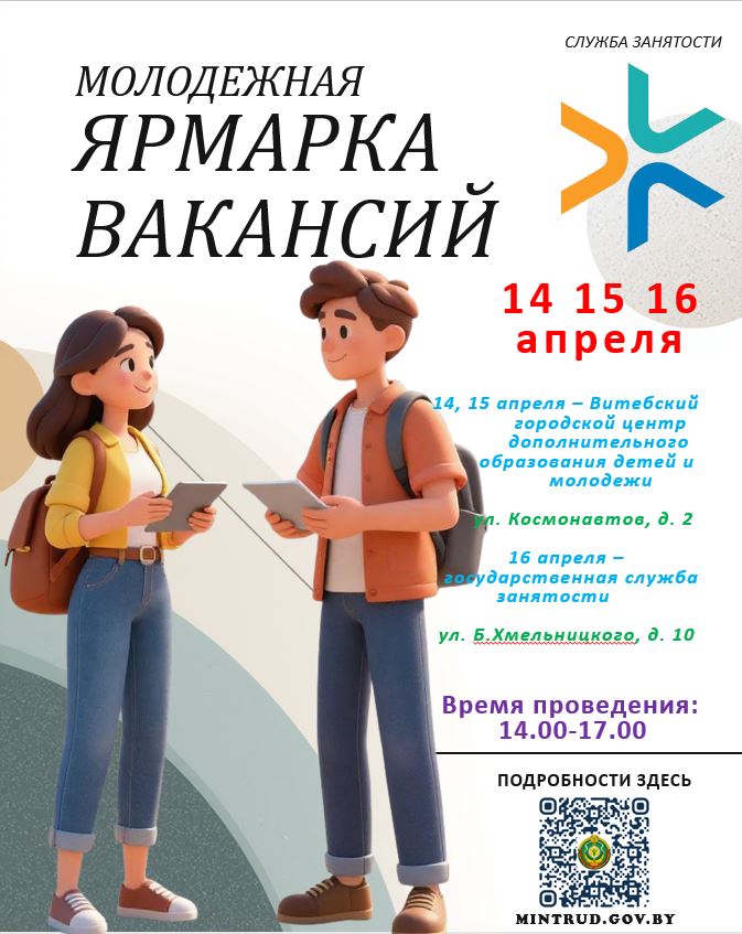 Организациями г. Витебска будут представлены вакансии для временного трудоустройства учащейся молодежи в свободное от учебы время, а также вакансии для трудоустройства выпускников учебных заведений.