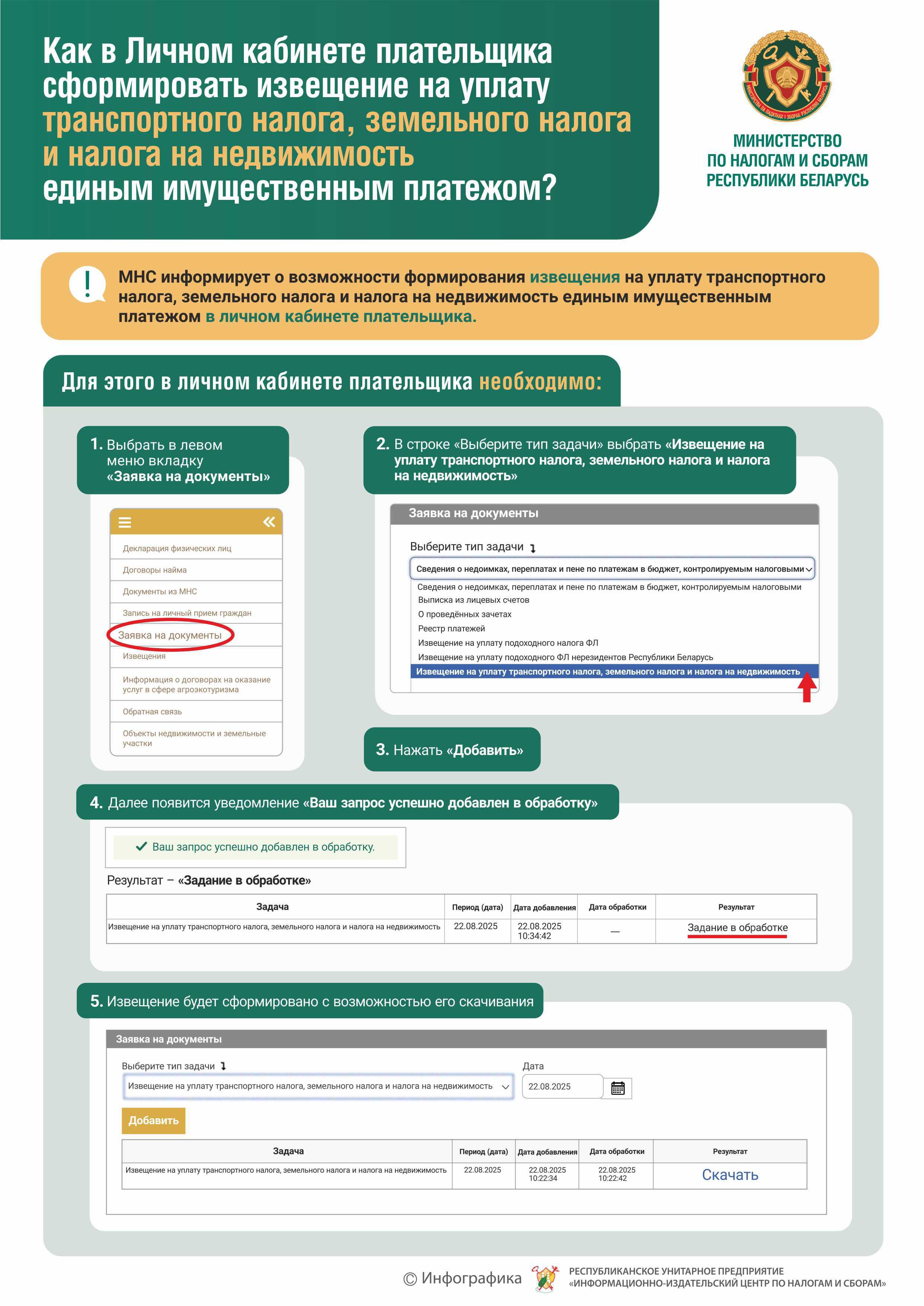 Как в личном кабинете плательщика сформировать извещение на уплату транспортного налога, земельного налога и т.д.