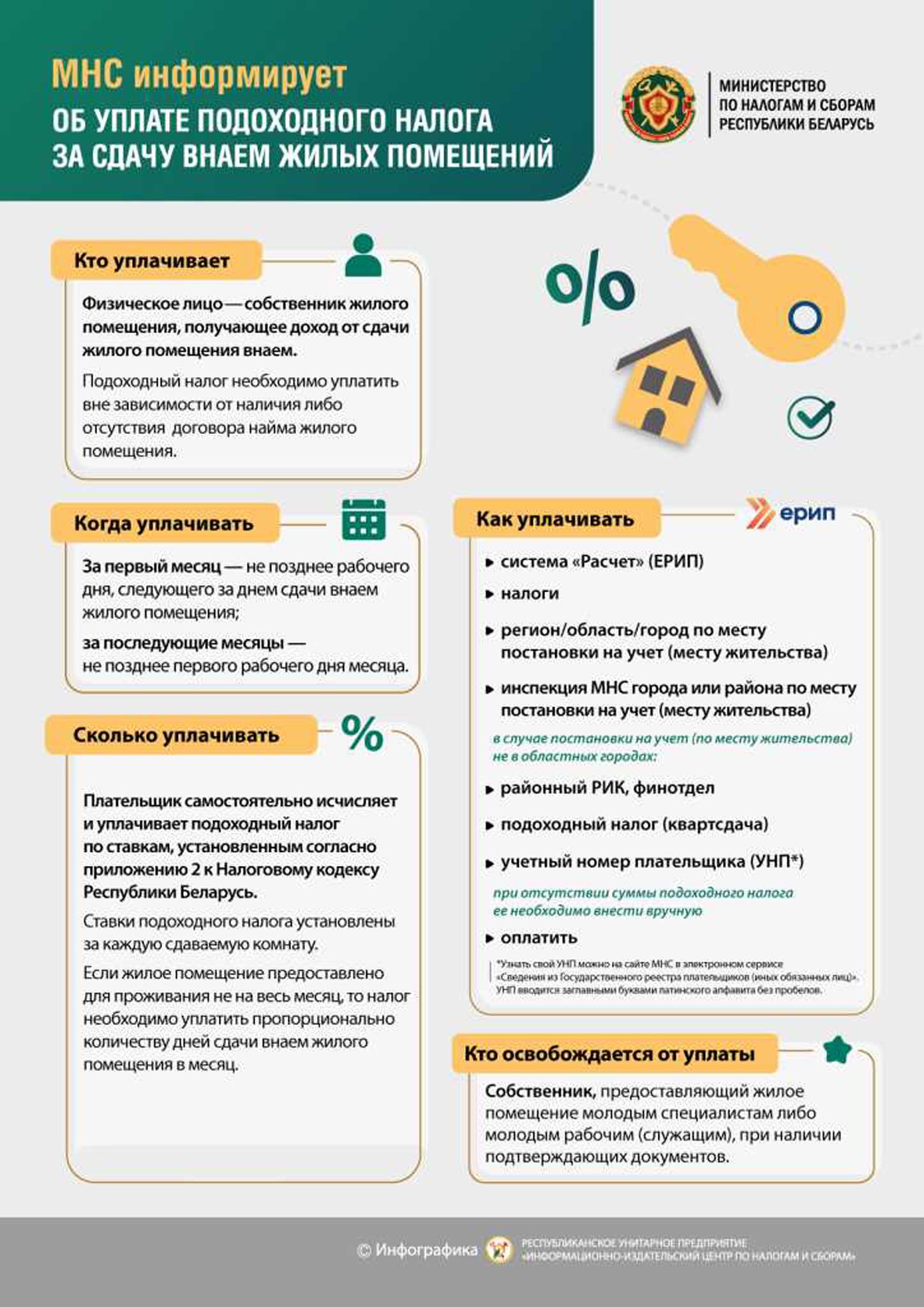 Налоговые органы области напоминают гражданам, осуществляющим сдачу жилых (нежилых) помещений иным физическим лицам на долгосрочный период, о необходимости уплаты подоходного налога с физических лиц (далее – подоходный налог).