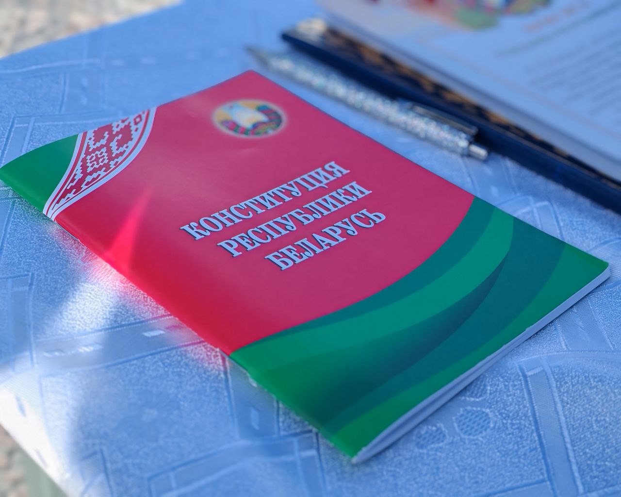 Каждый участник церемонии получил подарок от начальника ОГИМ Первомайского РОВД майора милиции Ольги Королевой — Конституцию Республики Беларусь.