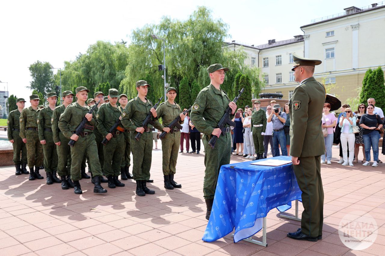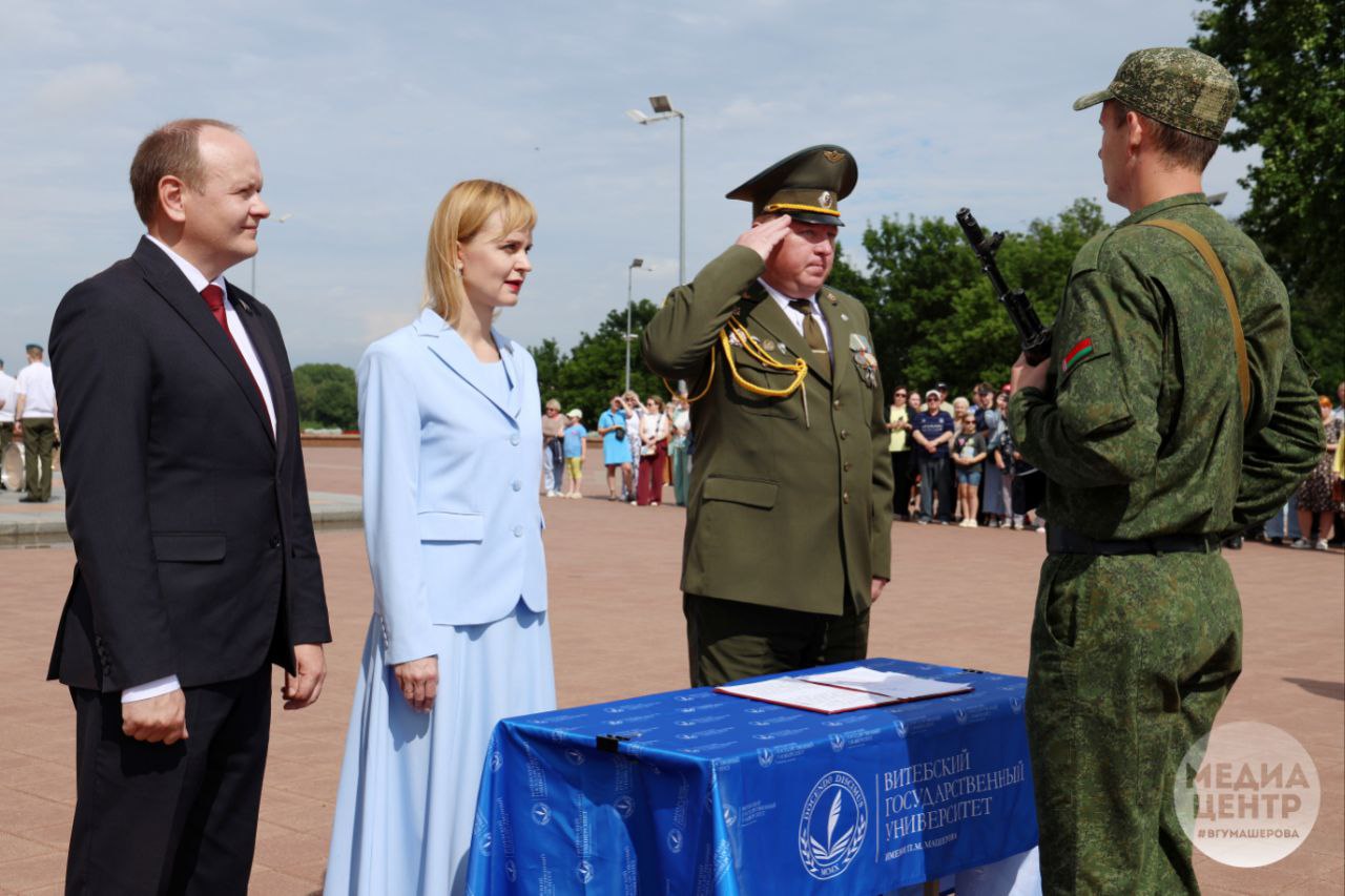 Традиционная церемония принятия военной присяги состоялась на площади Победы у мемориального комплекса в честь советских воинов, партизан и подпольщиков Витебщины. 71 выпускник военной кафедры Витебского государственного университета имени П.М. Машерова 26 июля присягнул на верность Родине и белорусскому народу.