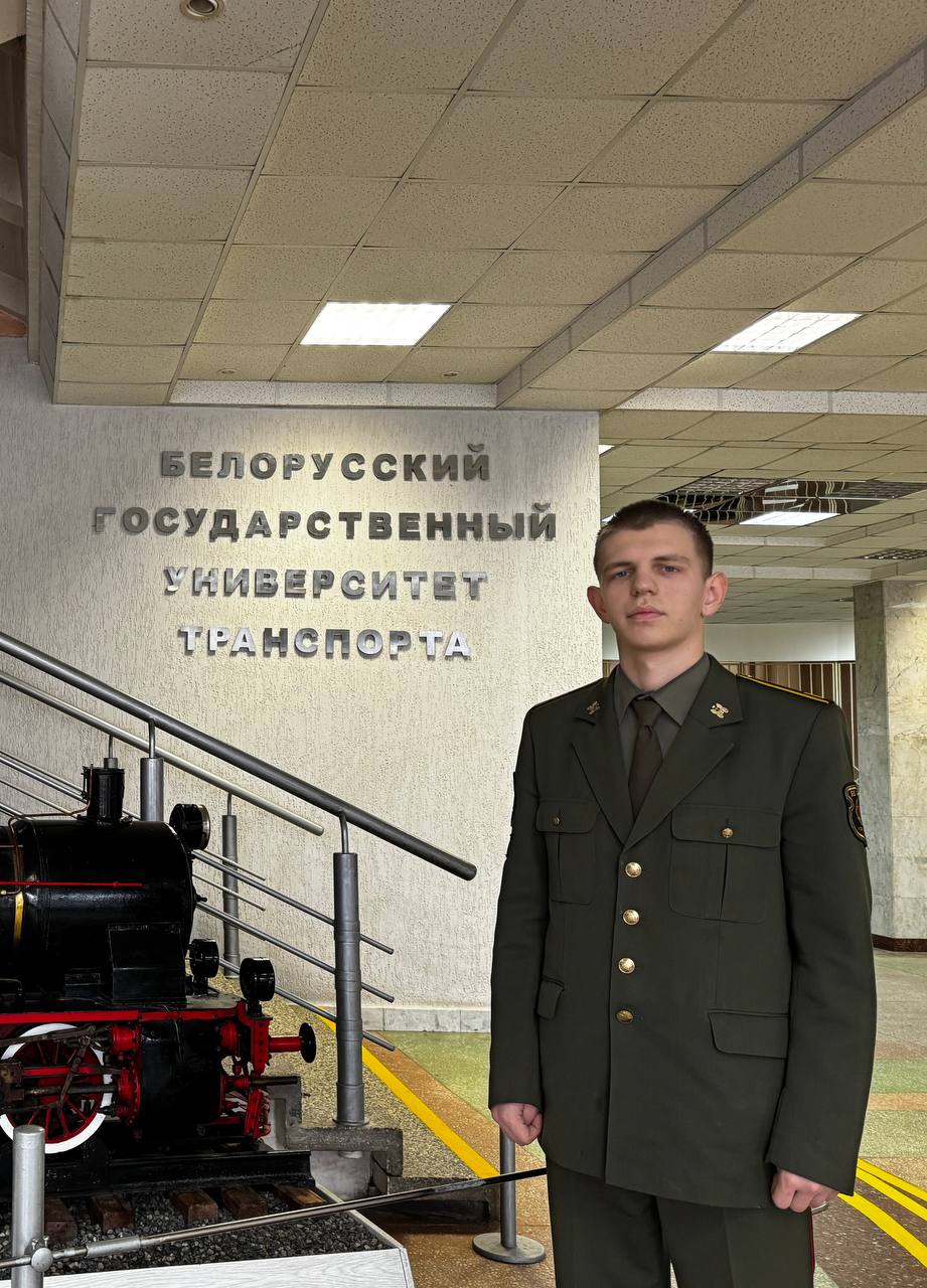 — С ранних лет я мечтал стать военным, служить своей Родине. Поэтому после окончания средней школы № 46 имени И. Х. Баграмяна свой выбор остановил на военно-транспортном факультете БГУ. Условия, созданные в этом учреждении образования, помогают мне ежедневно развиваться и раскрывать свой потенциал в различных направлениях. К примеру, я вхожу в состав роты почетного караула военно-транспортного факультета, которая уже давно является визитной карточкой Гомельщины.