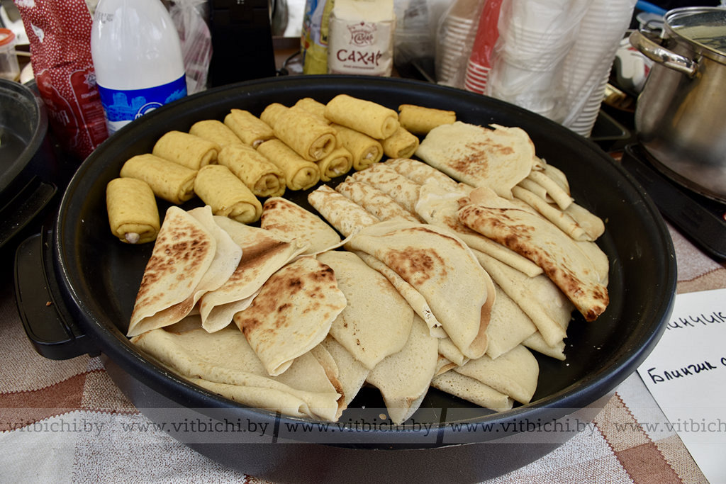 Пока одни танцевали, другие подкреплялись на фудкорте. Аромат свежих блинов, дымка от шашлыка и пар от горячего чая разносились по всему парку.