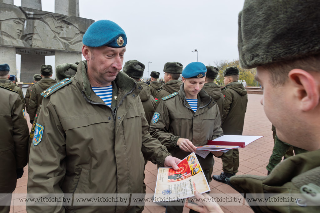 Более трехсот военнослужащих 103-й Витебской отдельной гвардейской воздушно-десантной бригады, отслужившие установленный срок, попрощались с командирами и товарищами на торжественной церемонии на площади Победы.