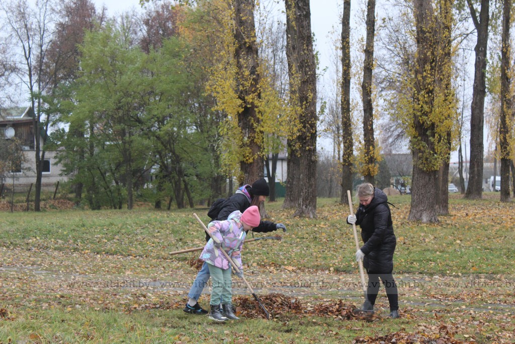 В Октябрьском районе на субботнике наводят порядок в скверах имени Веры Хоружей и имени Горовца, в парке культуры и отдыха имени Фрунзе и парке Партизанской Славы имени Миная Шмырёва, в пойме реки Витьба, а также в городских дворах, помогая ЖЭУ.