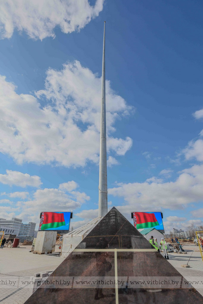 На финишной прямой. Такими словами определил сегодня ход строительства новой площади Герба и Флага директор КУП «Управление капитального строительства города Витебска» Артур Строд. До открытия знакового объекта остался месяц.