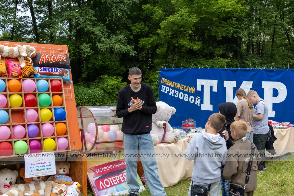 Развлечений хватало всем: пока взрослые соревновались, дети веселились в игровом пространстве с надувным батутом, тиром и другими активностями.