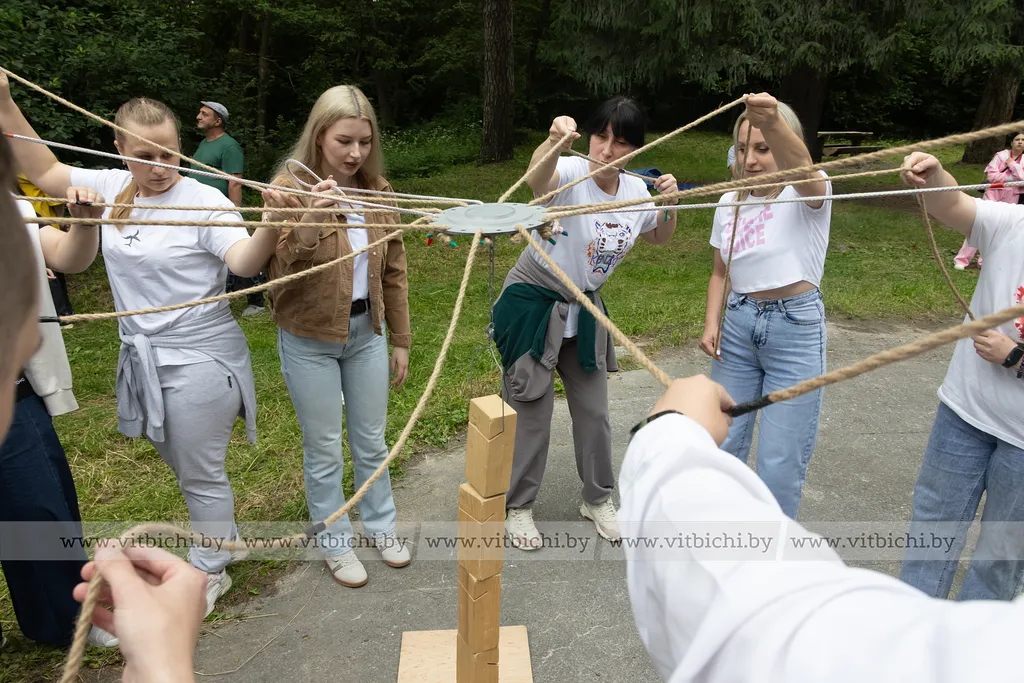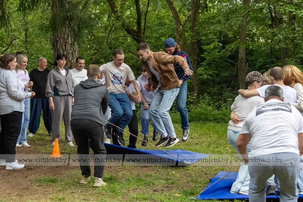 В пятничный вечер накануне Дня молодежи, который в Беларуси традиционно отмечается в последнее воскресенье июня, в живописной зоне отдыха микрорайона Руба царила особая атмосфера. Сотрудники ОАО «Доломит» собрались на масштабный тимбилдинг. Тридцать участников, разделившись на команды, с энтузиазмом включились в необычные соревнования. Креативные задания, масштабный реквизит и горячая поддержка болельщиков создали неповторимую атмосферу.