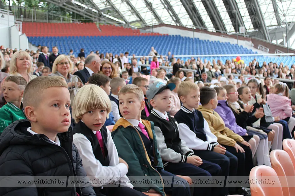 В День знаний педагоги и учащиеся гимназии № 1 Витебска имени Ж. И. Алфёрова собрались в Летнем амфитеатре на первый в новом учебном году урок с тематическим названием «Эстафета поколений: сохраняя прошлое, создаем будущее».