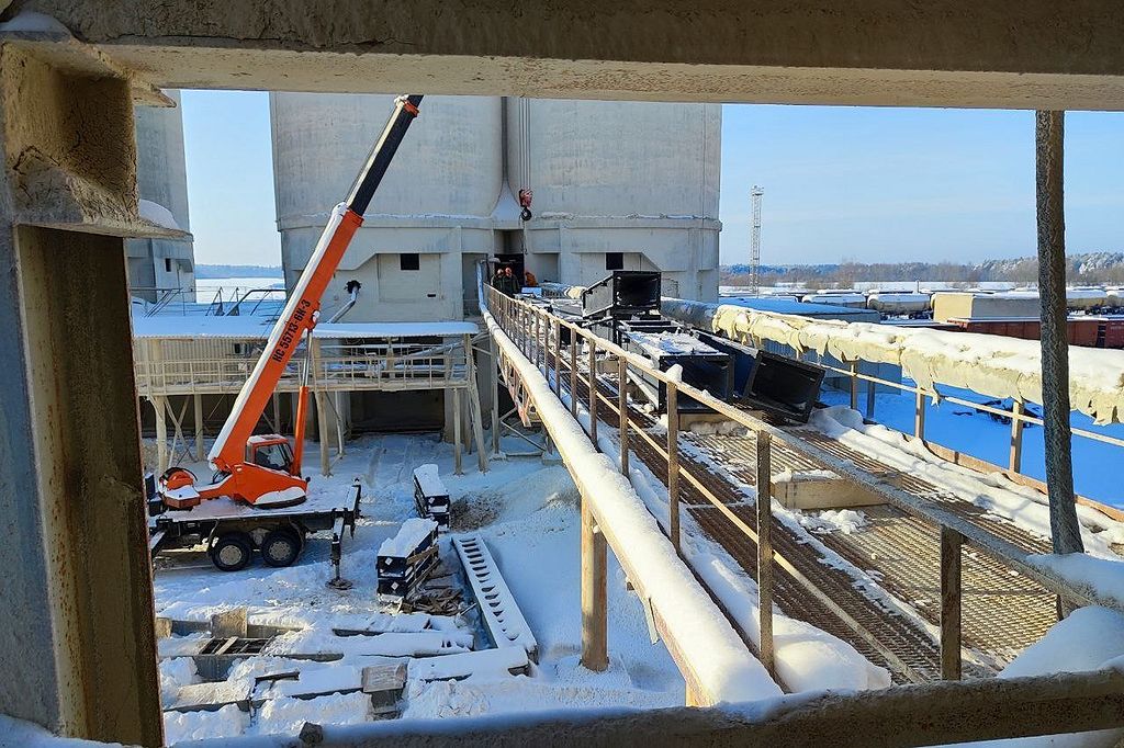 На площадке одновременно ведутся работы по заливке фундаментов, прокладке новых инженерных коммуникаций, крупноузловой сборке технологических агрегатов и установке нового конвейерного оборудования.