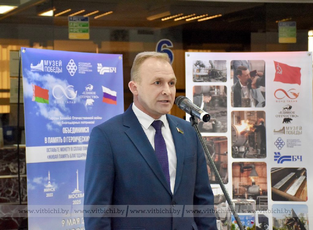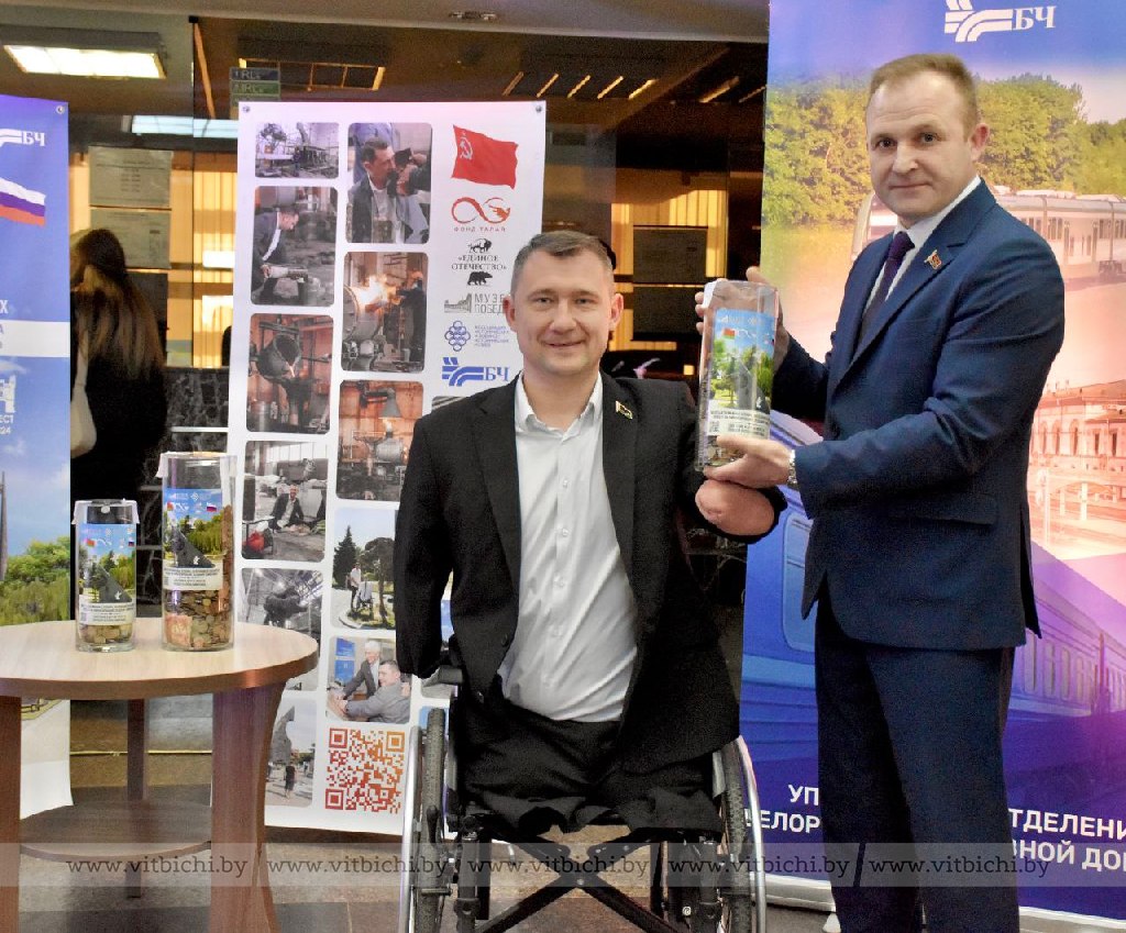 В День единения народов Беларуси и России на железнодорожном вокзале станции Витебск состоялась церемония передачи монет благотворительному фонду Алексея Талая в рамках проекта «Живая память благодарных поколений».