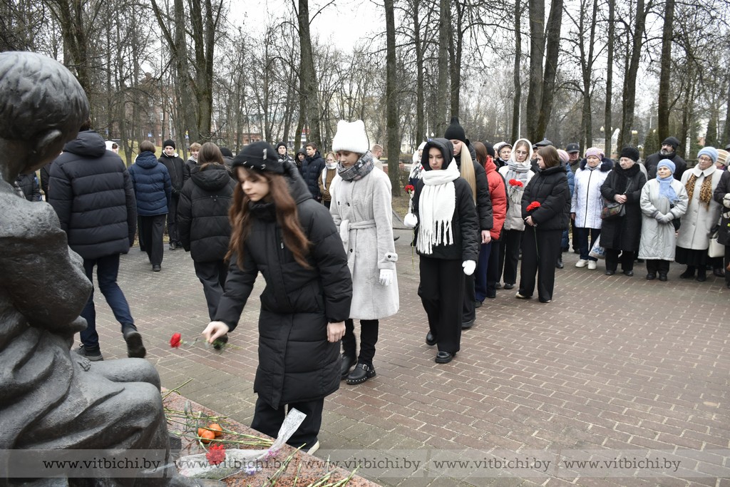 Возле памятника «Детям войны» состоялся митинг, посвященный 81-й годовщине полного освобождения Ленинграда от фашистской блокады в годы Великой Отечественной войны и Международному дню памяти жертв Холокоста. В этот день, 27 января 1944 года, воины Красной армии окончательно освободили город на Неве от блокады, а 27 января 1945 года советские войска освободили узников одного из самых страшных нацистских концлагерей – Освенцима. На Генеральной ассамблее ООН в 2005 году день 27 января был утвержден как Международный день памяти жертв Холокоста. Возле памятника «Детям войны» собрались представители органов власти, общественных организаций, бывшие малолетние узники фашистской неволи и блокадники, учащаяся молодежь. – Сегодня мы с вами пришли сюда, чтобы в очередной раз отдать дань памяти нашим соотечественникам, которые погибли в ходе Второй мировой войны, Великой Отечественной войны, и вспомнить трагические события истории – Холокост и блокаду Ленинграда, которая продлилась 900 дней и унесла, по разным данным, от 600 тысяч до полутора миллиона жизни горожан, – сказал начальник отдела идеологической работы и по делам молодежи Павел Дроздов. – Мы вспоминаем мужество, отвагу и стойкость наших земляков. Наша с вами задача, оставаясь верными памяти о тех далеких событиях, сохранить мир в родной Беларуси. Председатель Витебского городского общественного объединения блокадников Юлия Фролова и председатель Октябрьской районной организации Белорусской ассоциации бывших малолетних узников фашизма Надежда Гракова призвали молодежь приходить на это святое место и помнить о том, что довелось пережить советским людям, в том числе детям, в годы войны, хранить благодарность советским воинам-освободителям.Митинг, посвященный 81-й годовщине полного снятия Ленинградской блокады и Международному дню памяти жертв Холокоста, прошел в Витебске