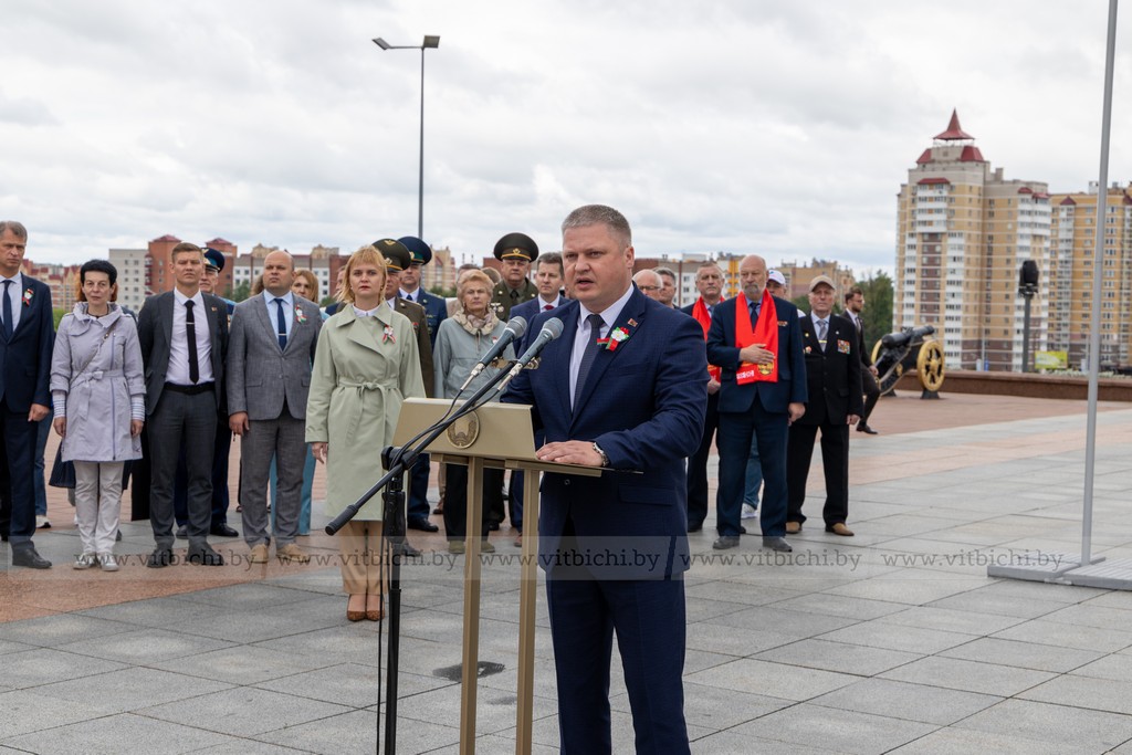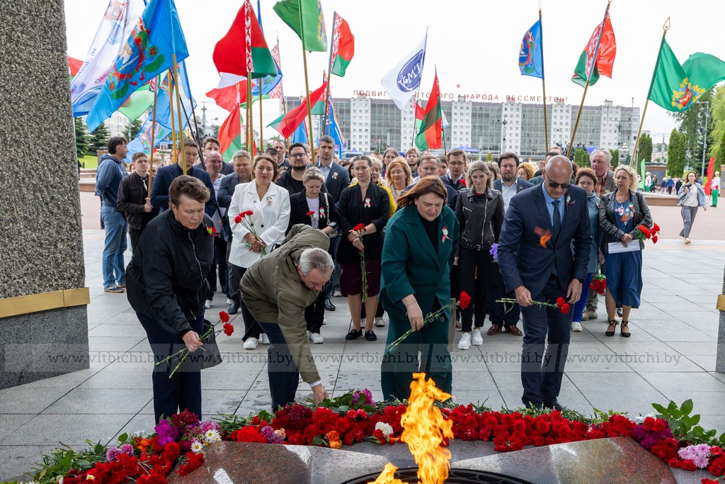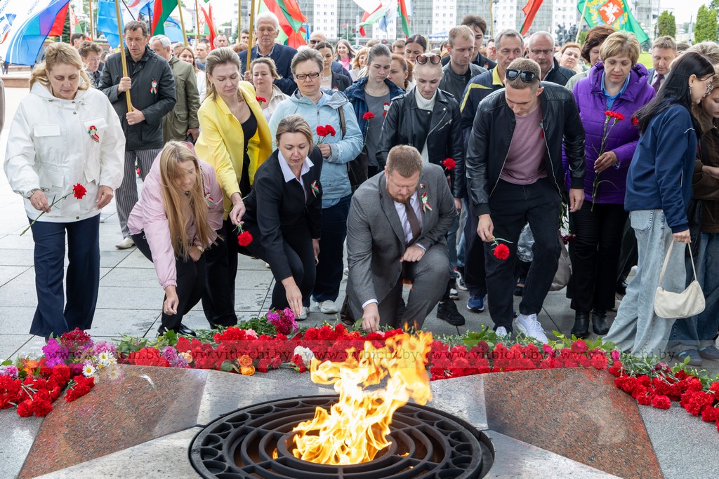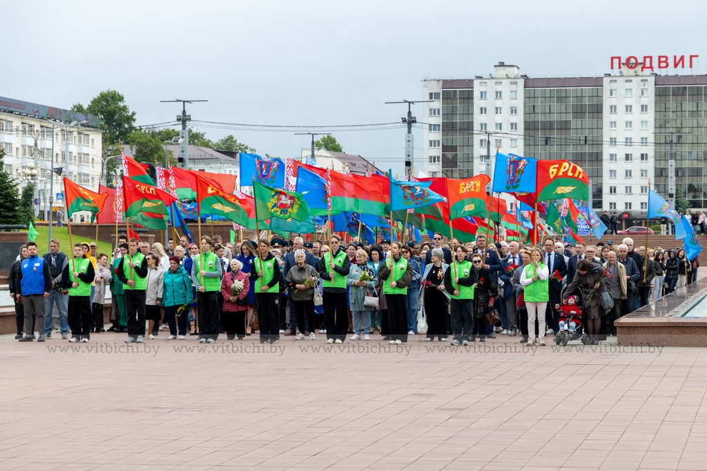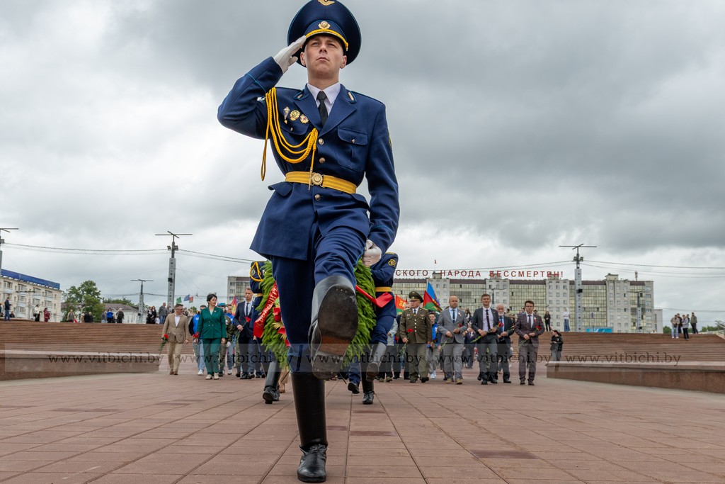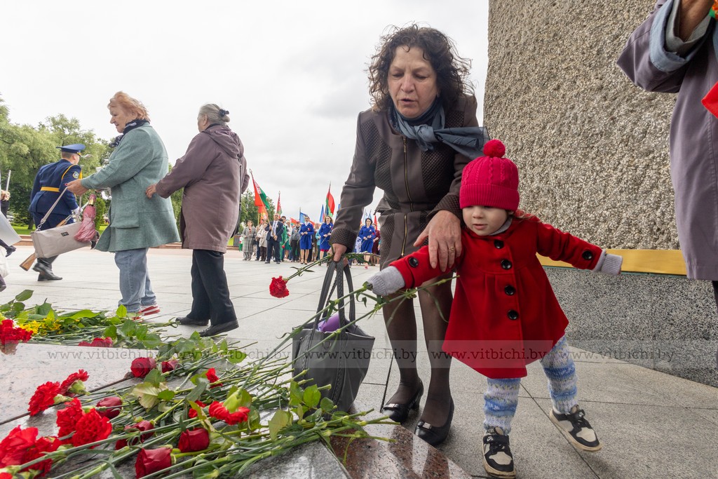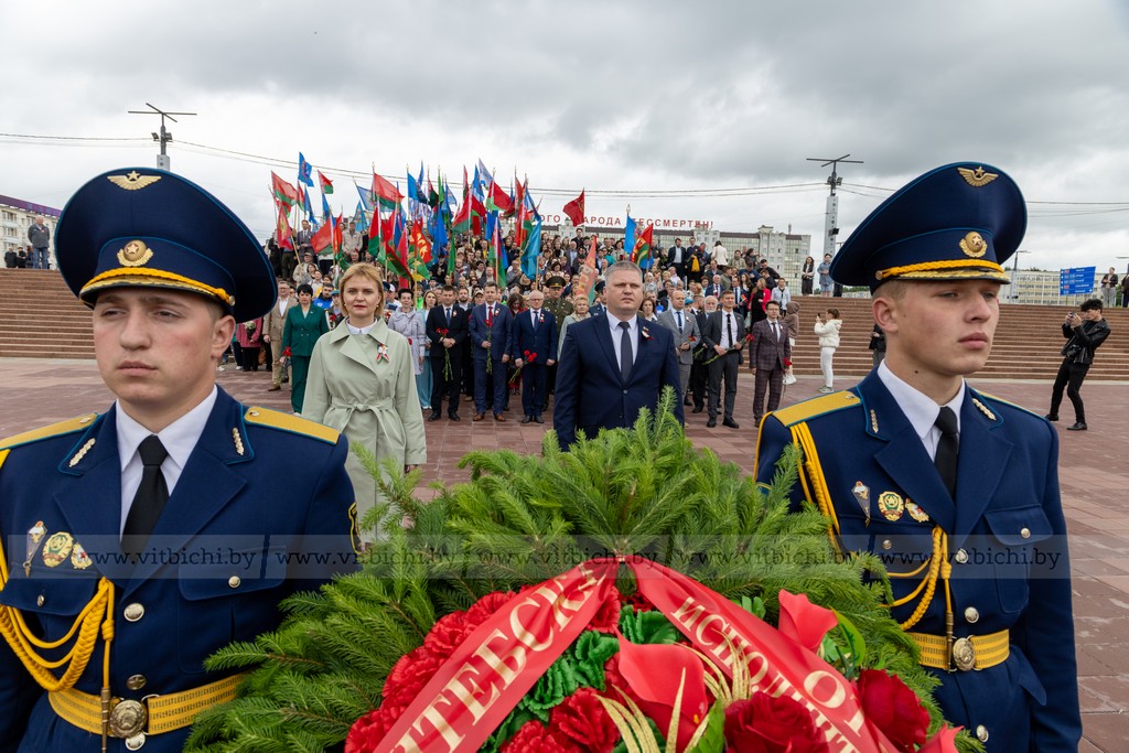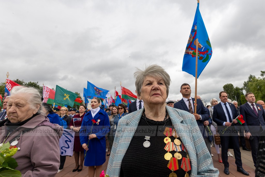 За 1083 дня оккупации, в городе и его окрестностях гитлеровцами было уничтожено более 150 тысяч советских военнопленных и мирных граждан. На главной площади города собрались представители власти, общественных организаций и объединений, взрослые и дети. К монументу в честь воинов-освободителей, партизан и подпольщиков Витебщины возложили венки и цветы.