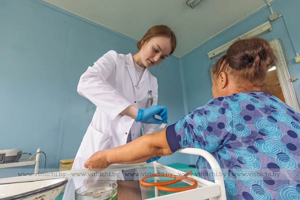 Фельдшер Дарья Шевченко после окончания Витебского государственного медицинского колледжа имени академика И. П. Антонова по распределению начала работать в Пестуницком фельдшерско-акушерском пункте Витебского района.