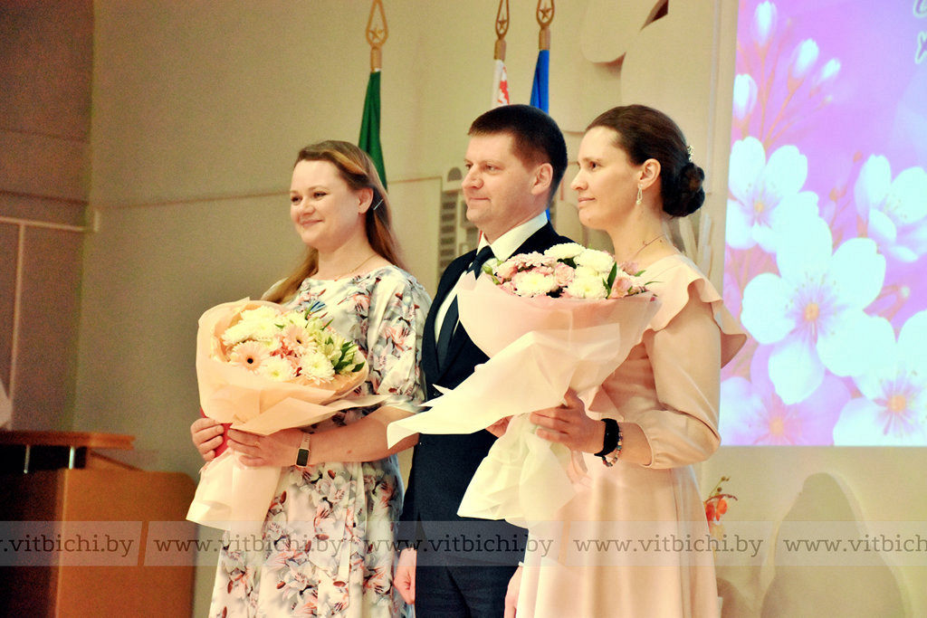 Государственные награды — Орден Матери — Евгений Семёнычев вручил бухгалтеру сельского фермерского хозяйства «МОЛБСЕЛ» Ирине Кузнецовой и педагогу детской школы искусств № 5 Витебска Елене Морозовой. Витебчанки также принимали цветы и поздравления от своих руководителей и близких людей.