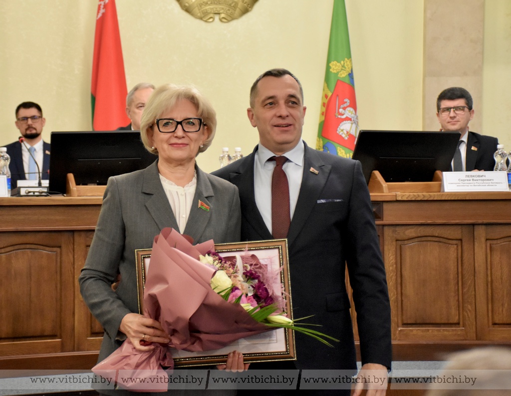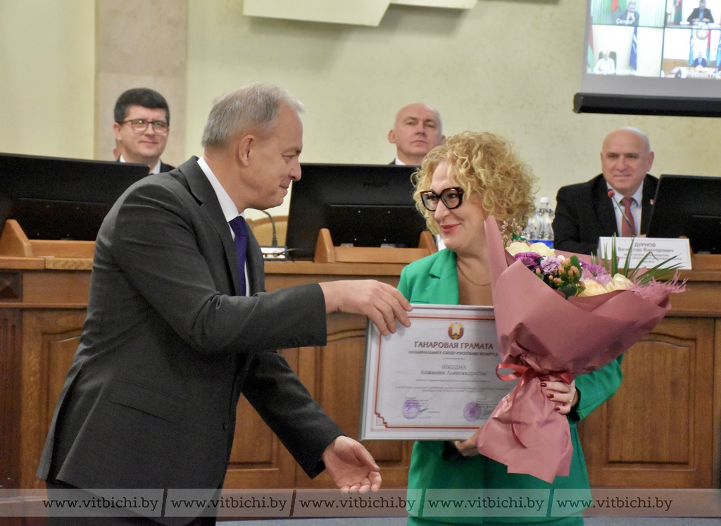За значительный вклад в реализацию экономической политики Республики Беларусь, подготовку и проведение мероприятий XI Форума регионов Беларуси и России Почетной грамотой Национального собрания Республики Беларусь награждены заместитель председателя Витебского облисполкома Анжелика Никитина, председатель Витебского горисполкома Алексей Героев, руководитель филиала «Глубокские электрические сети» УП «Витебскэнерго» Олег Апетёнок.