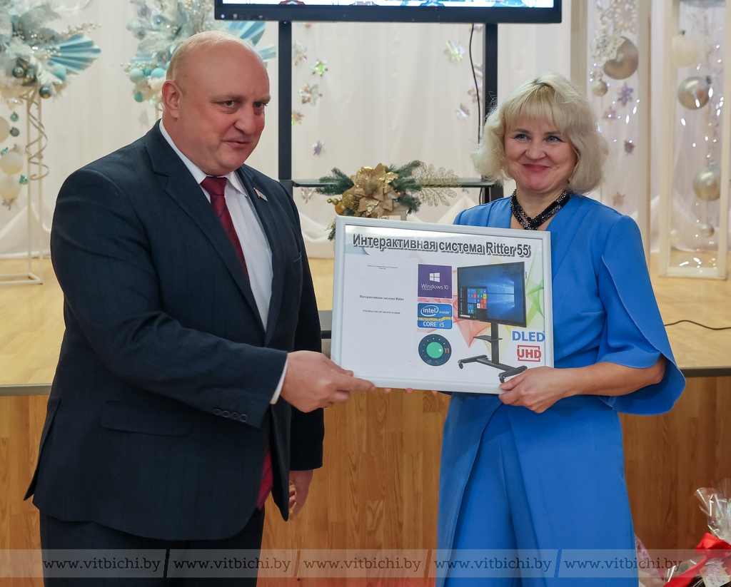 Гости пришли с гостинцами и ценными подарками. Это интерактивная система от областного Совета депутатов, сертификаты на солидные денежные суммы от городского Совета депутатов и администрации района, областной организации «Белпрофмаш».