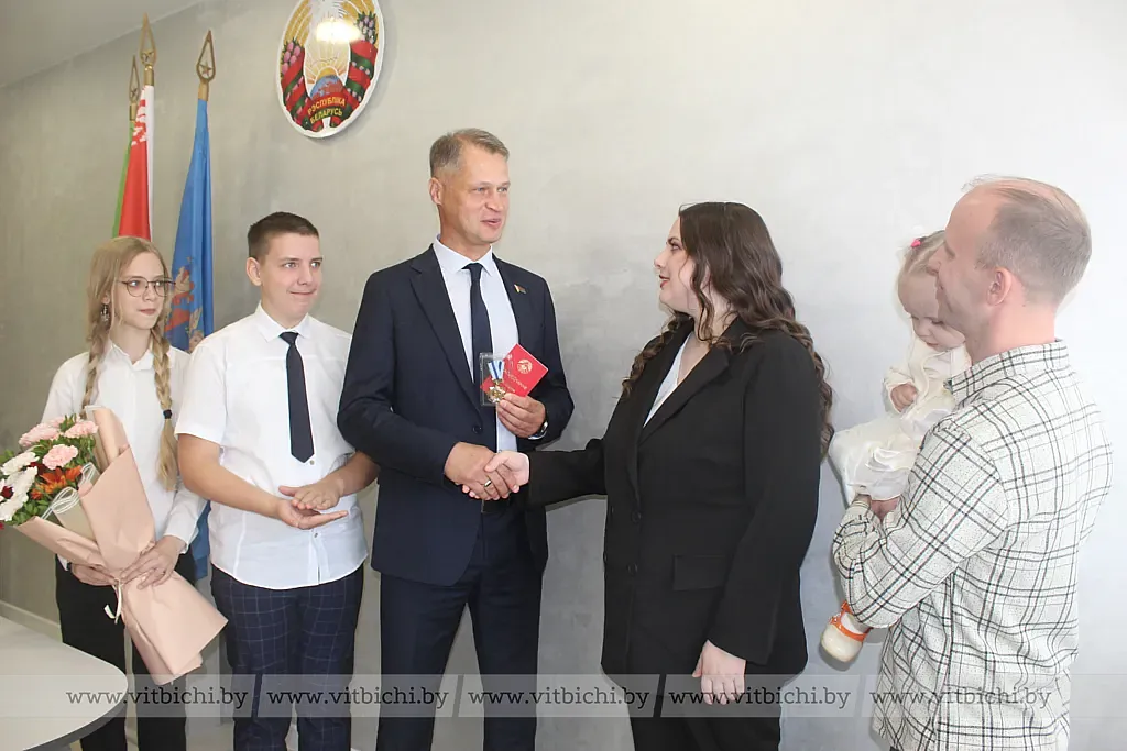 Многодетную маму Елену Карпенко чествовали в администрации Октябрьского района, вручив ей высокую государственную награду – орден Матери. Эта не просто знак отличия, а символ глубокого уважения и признания той важной роли, которую играет женщина-мать в белорусском обществе.