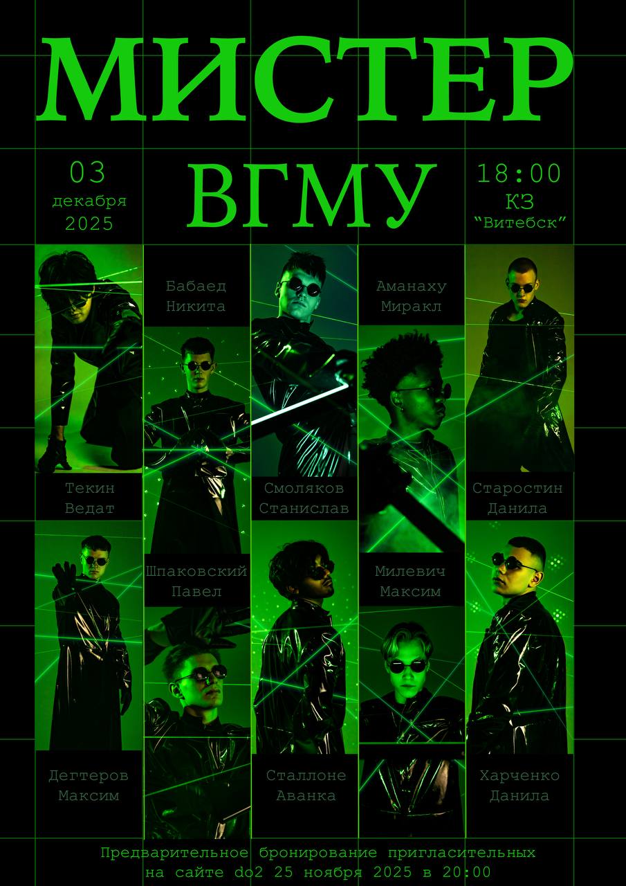 В Витебске готовится главное студенческое шоу этой зимы — конкурс «Мистер ВГМУ-2025». В этом году организаторы полностью переосмыслили формат мероприятия, превратив его в масштабное шоу в стиле «Матрицы» с единой сюжетной линией.