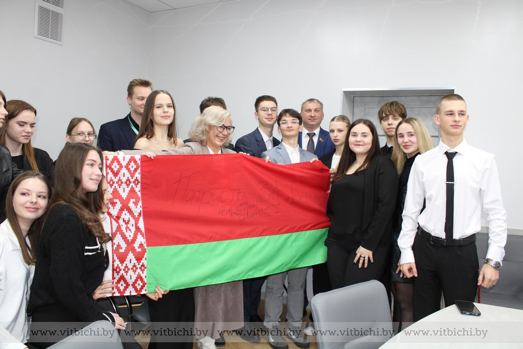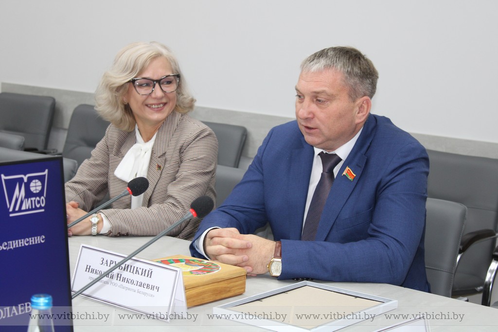 Николай Зарубицкий и председатель областной организации РОО «Патриоты Беларуси» Ольга Мацюсь рассказали участникам открытого диалога о самых масштабных проектах по объединению общества, пригласили молодых людей принять участие в нескольких благотворительных инициативах. Также гости представили главный талисман общественного объединения – Государственный флаг Беларуси с автографом Александра Лукашенко. К слову, как было отмечено на встрече, общественное объединение «Патриоты Беларуси» за реализацию социально значимых проектов, направленных на формирование гражданского самосознания и укрепление государственного суверенитета в 2021 году стало обладателем премии «За духовное возрождение».