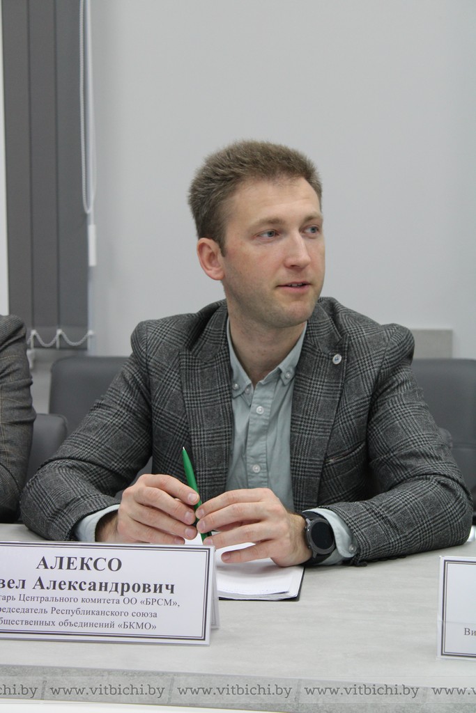 С активистами витебского университета встретились заместитель начальника главного управления идеологической работы и по делам молодежи облисполкома Вячеслав Хрол, заместитель председателя горисполкома Виктор Глушин, а также секретарь Центрального комитета общественного объединения «Белорусский республиканский союз молодежи» Павел Алексо и председатель республиканского общественного объединения «Патриоты Беларуси» Николай Зарубицкий.