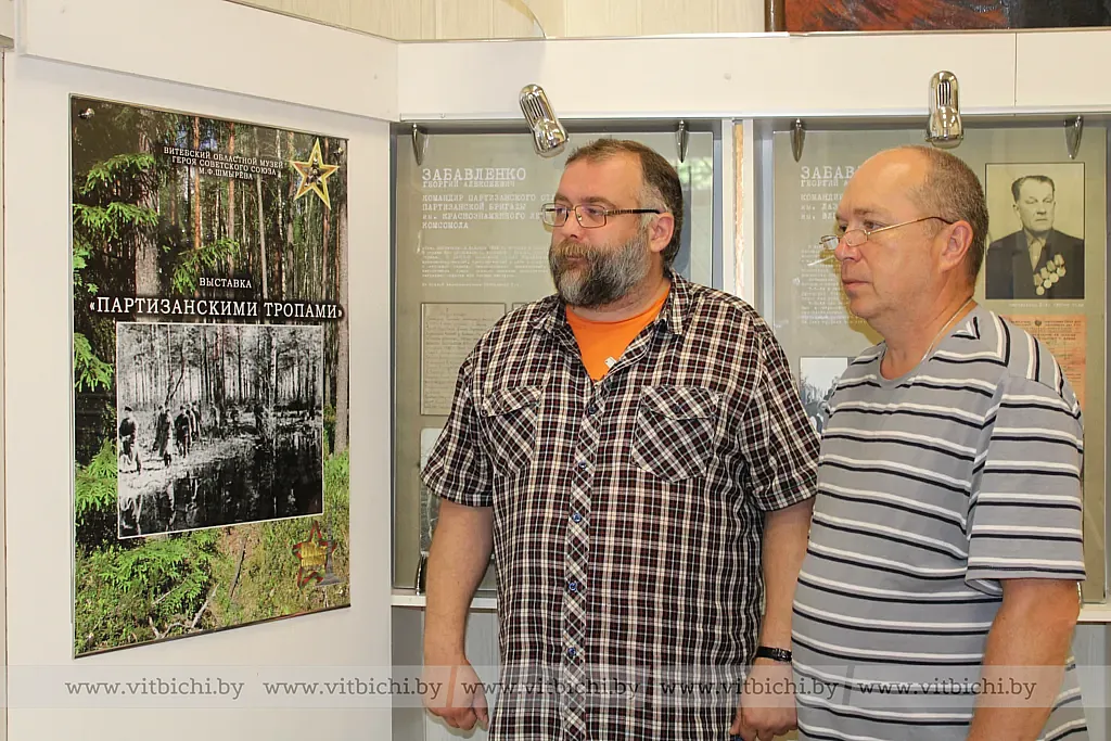 «Партизанскими тропами» — один из многих проектов коллектива, приуроченных к 80-летию Великой Победы. Его содержание находит благодарный отклик у витебчан и гостей города. Так, место захоронения своего деда, бойца бригады имени Краснознамённого Ленинского комсомола Василия Андреевича Кичигина, который погиб в бою с фашистами в марте 1943 года, ищет житель Санкт-Петербурга Григорий Яковлев. Поиск привел его в музей М. Ф. Шмырёва. И сама выставка, и музейные залы впечатлили петербуржца.