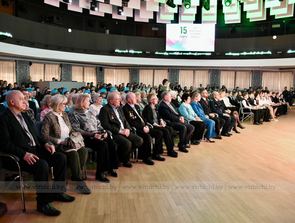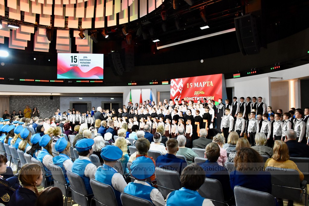 Торжественное собрание, посвященное Дню Конституции Республики Беларусь, состоялось в концертном зале «Витебск». Здесь собрались представители органов власти, учащейся молодежи областного центра, общественных объединений и трудовых коллективов.