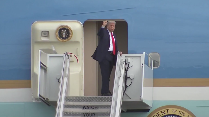 Оба лидера почти одновременно вышли из своих самолетов. Трамп поприветствовал Путина аплодисментами, затем они крепко пожали друг другу руки и прошли по красной ковровой дорожке, расстеленной на летном поле.