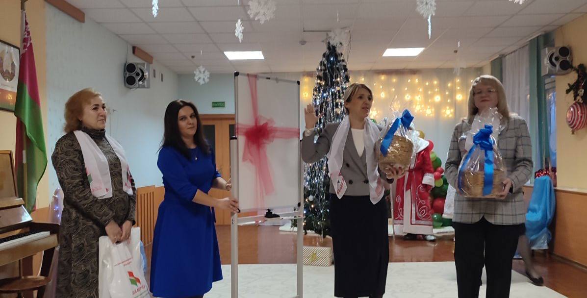 Первомайская районная организация РОО "Белая Русь" города Витебска подарила учреждению дошкольного образования магнитно-маркерную доску, а ребятам сладкие подарки и игрушки для активного зимнего отдыха.