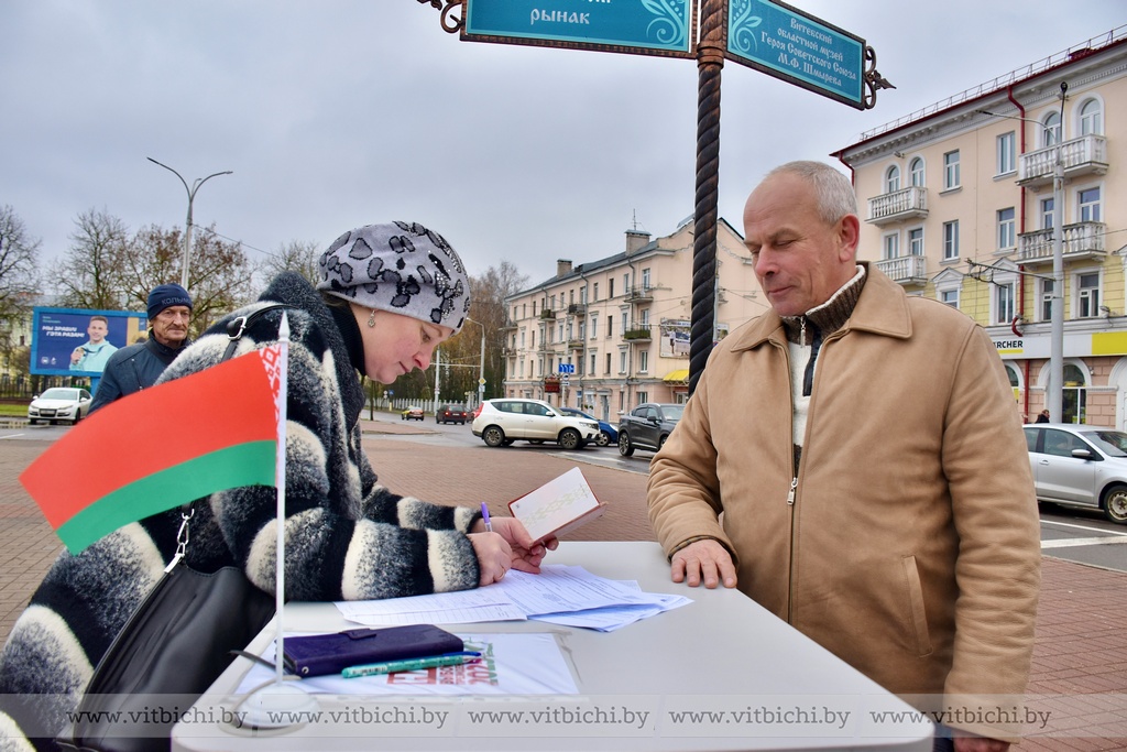 7 ноября /«Витьбичи»/ Виталий Сеньков/. Сегодня в Витебске, в соответствии с Календарным планом организационных мероприятий по подготовке и проведению выборов президента Республики Беларусь, стартовал сбор подписей избирателей в поддержку выдвижения кандидатов в Президенты Республики Беларусь.