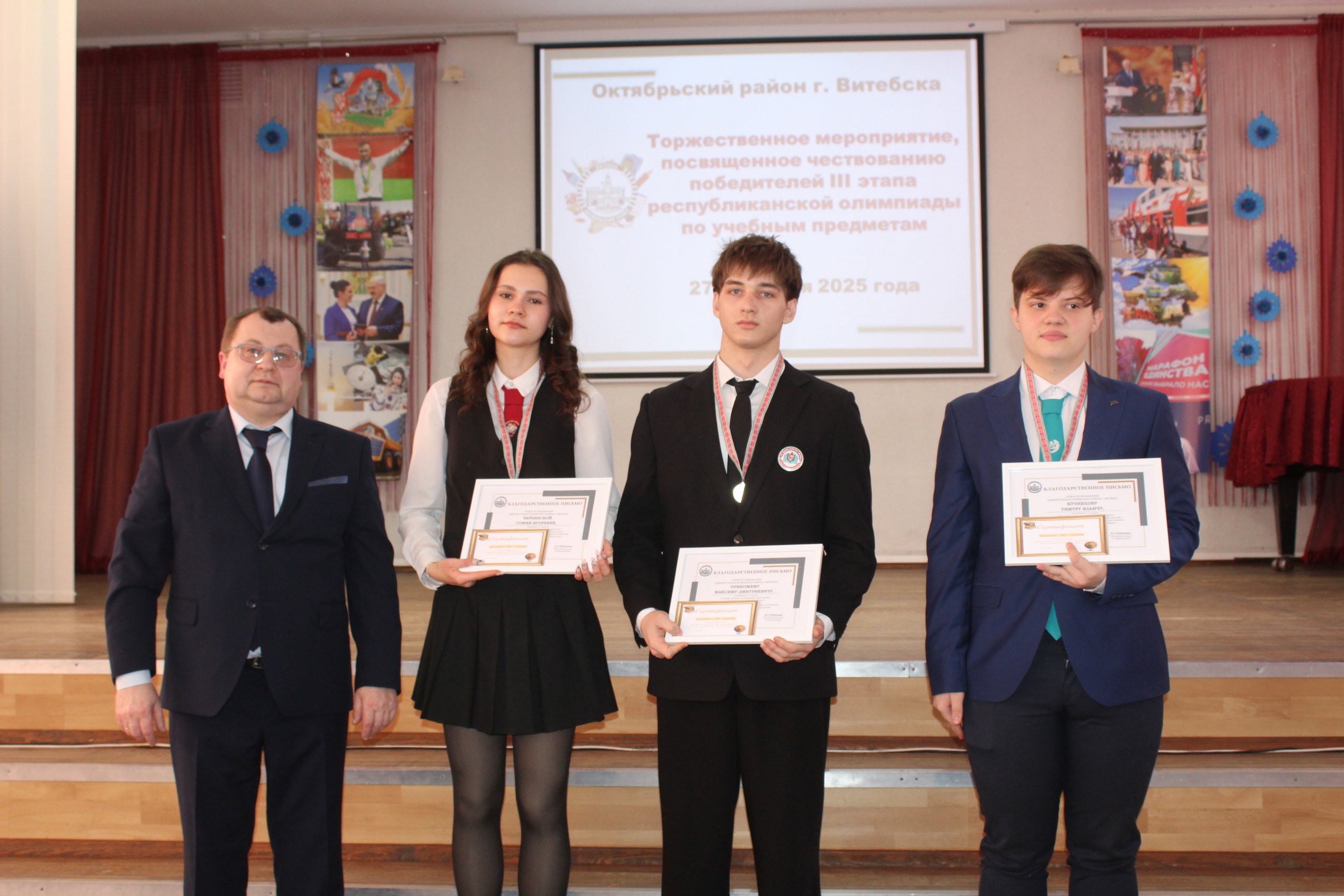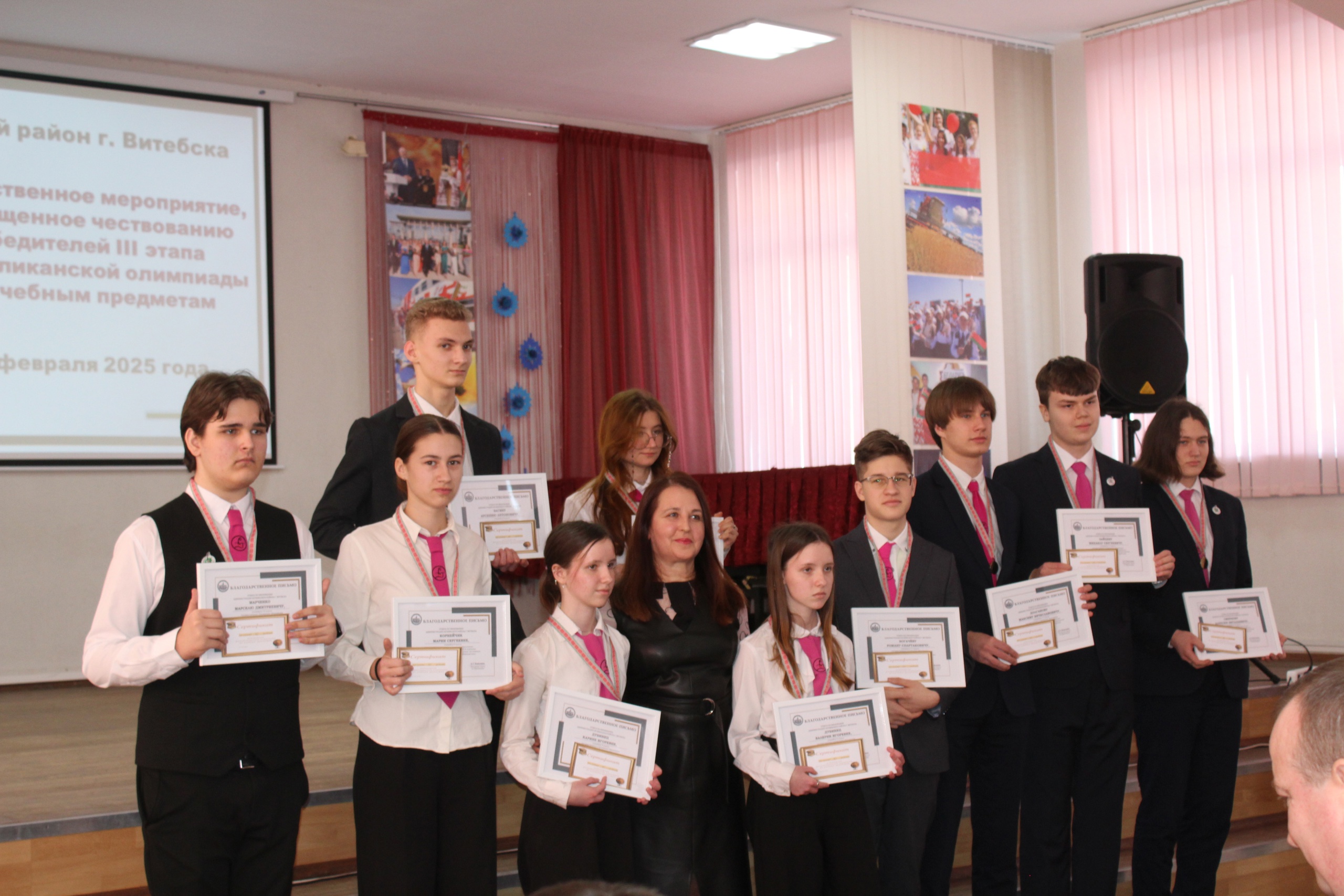 На базе гимназии № 3 г. Витебска имени А. С. Пушкина состоялось чествование всех причастных к этому достойному результату. 72 победы по 16 учебным предметам одержали юные октябрята в этом текущем учебном году, завоевав 8 дипломов I степени, 18 – II степени, 46 – III-й.