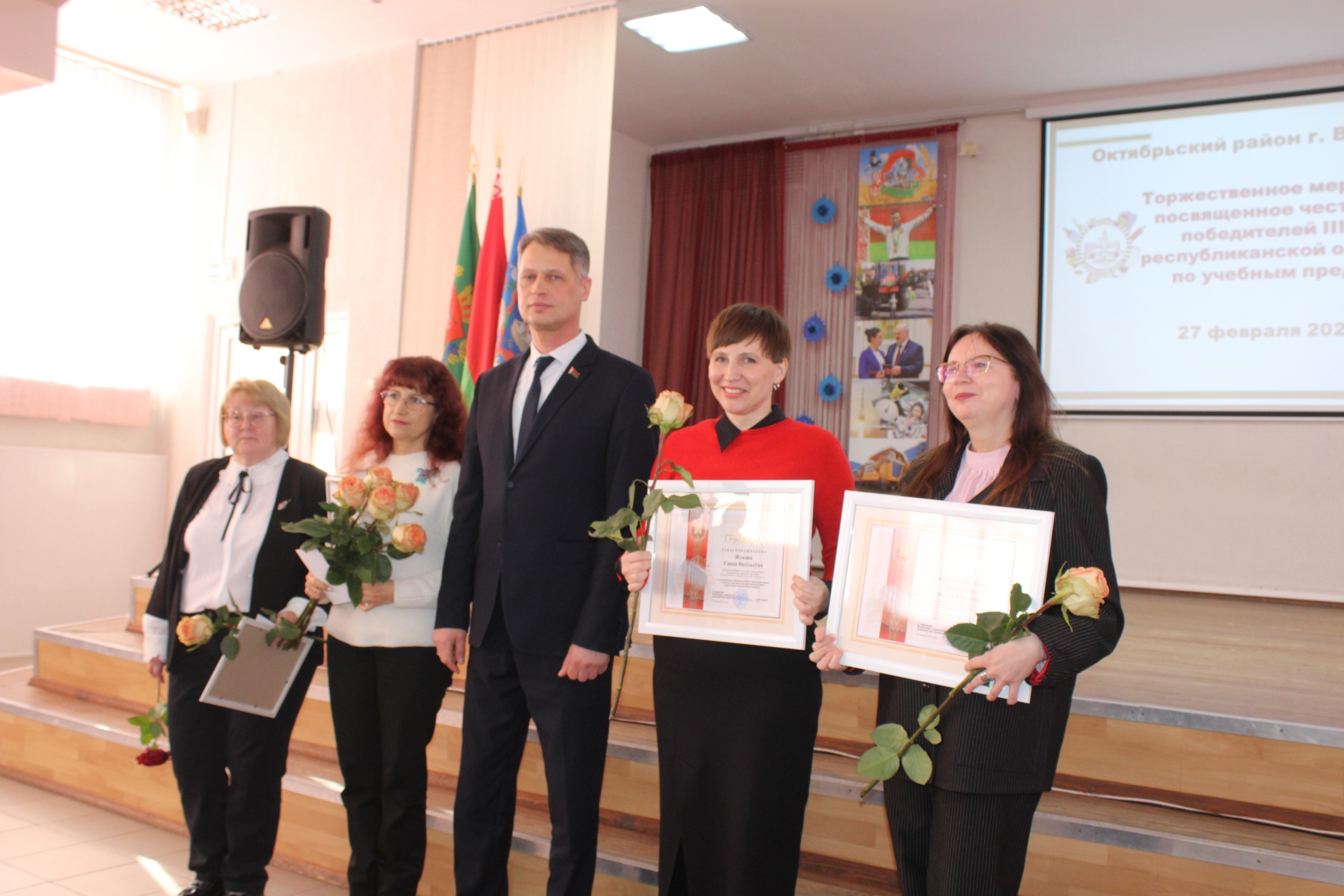 С прекрасными достижениями учащихся и их педагогов поздравили начальник главного управления по образованию облисполкома Дмитрий Хома, глава администрации Октябрьского района города Витебска Владимир Белевич, начальник отдела по образованию горисполкома Светлана Дорощенко.