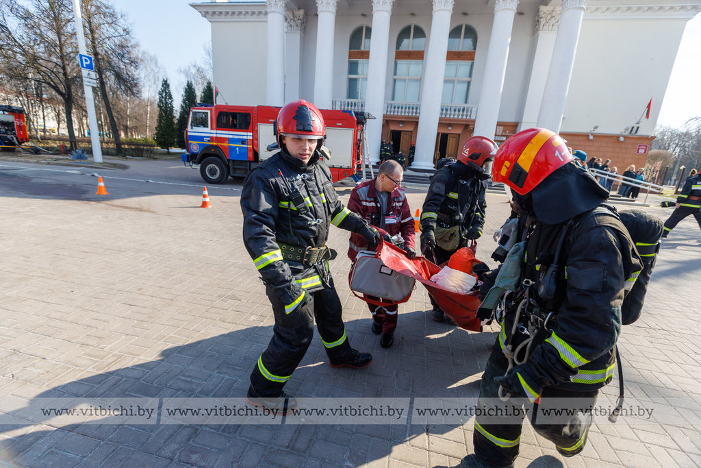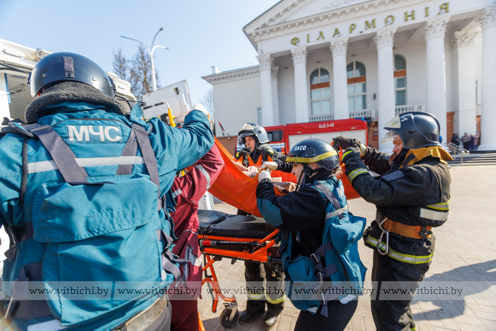 Пожар и несколько пострадавших: витебские спасатели провели масштабные учения в филармонии