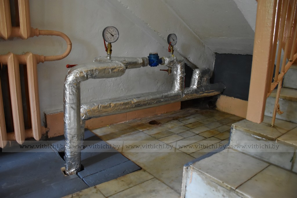 Татьяна Зубенко показала несколько дошкольных групп, провела к детским площадкам. Обошли мы и все здание, осматривая окна. Все они, и новые пластиковые, и старые с деревянными рамами, выглядят стандартно. Ничего необычного! Осмотрели мы и трубу, по которой в детсад поступает горячая и холодная вода. Новую конструкцию «одели» в теплоизоляцию и надежно закрепили. Конденсата на трубе и луж под лестницей не обнаружили.