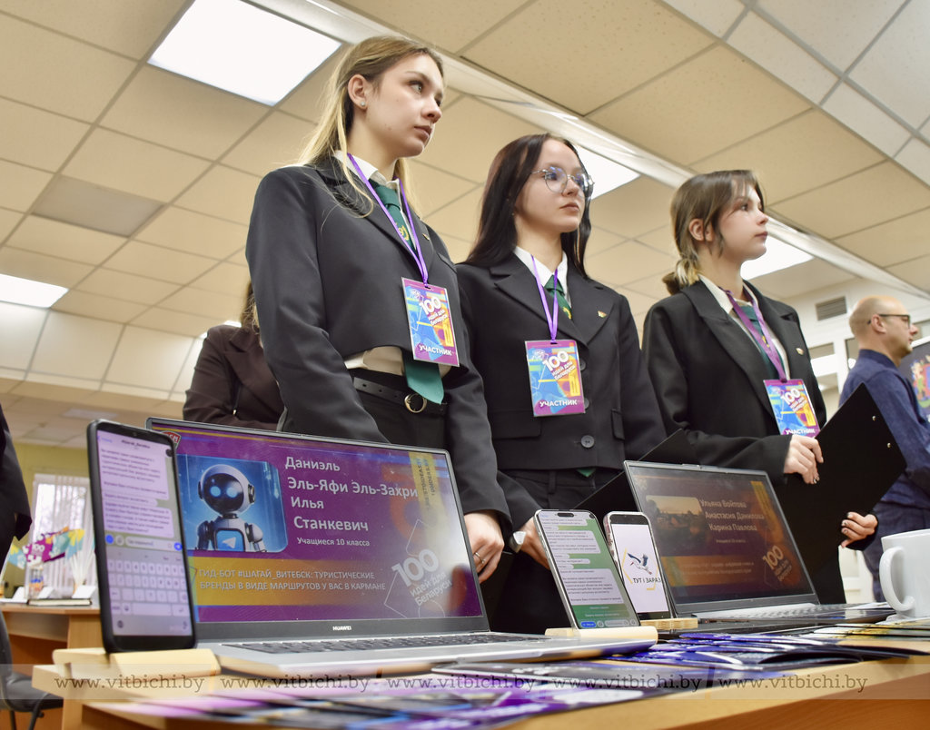 Андрей Онищенко из средней школы № 47 имени Е. Ф. Ивановского рассказал о создании мобильной биохимической мини-фабрики на колесах для экологически чистой переработки батареек, звуковой датчик для определения уровня воды для пожилых и людей с ослабленным зрением представил учащийся средней школы № 17 имени И. Р. Бумагина Егор Гончаров. Собранный из подручных средств датчик сможет подать сигнал человеку, например, при наполнении воды в ванной. Команда учащихся гимназии № 9 имени А. П. Белобородова презентовали гид-бот #шагай_Витебск и цифровой путеводитель «Тут і зараз», которые помогут ориентироваться туристам в незнакомом городе и построить маршруты по уникальным местам Беларуси.