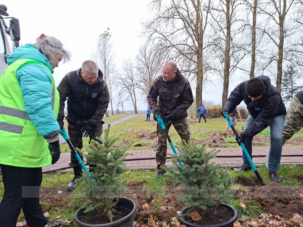 Председатель Витебского горисполкома Алексей Героев, глава городского депутатского корпуса Ольга Иванова, директор государственного предприятия «Витебский Зеленстрой» Валентина Шендюкова приняли активное участие в закладке аллеи. Всего было высажено 20 саженцев ели, которая в последующем будет служить живой зеленой изгородью.