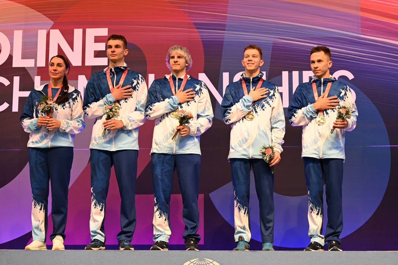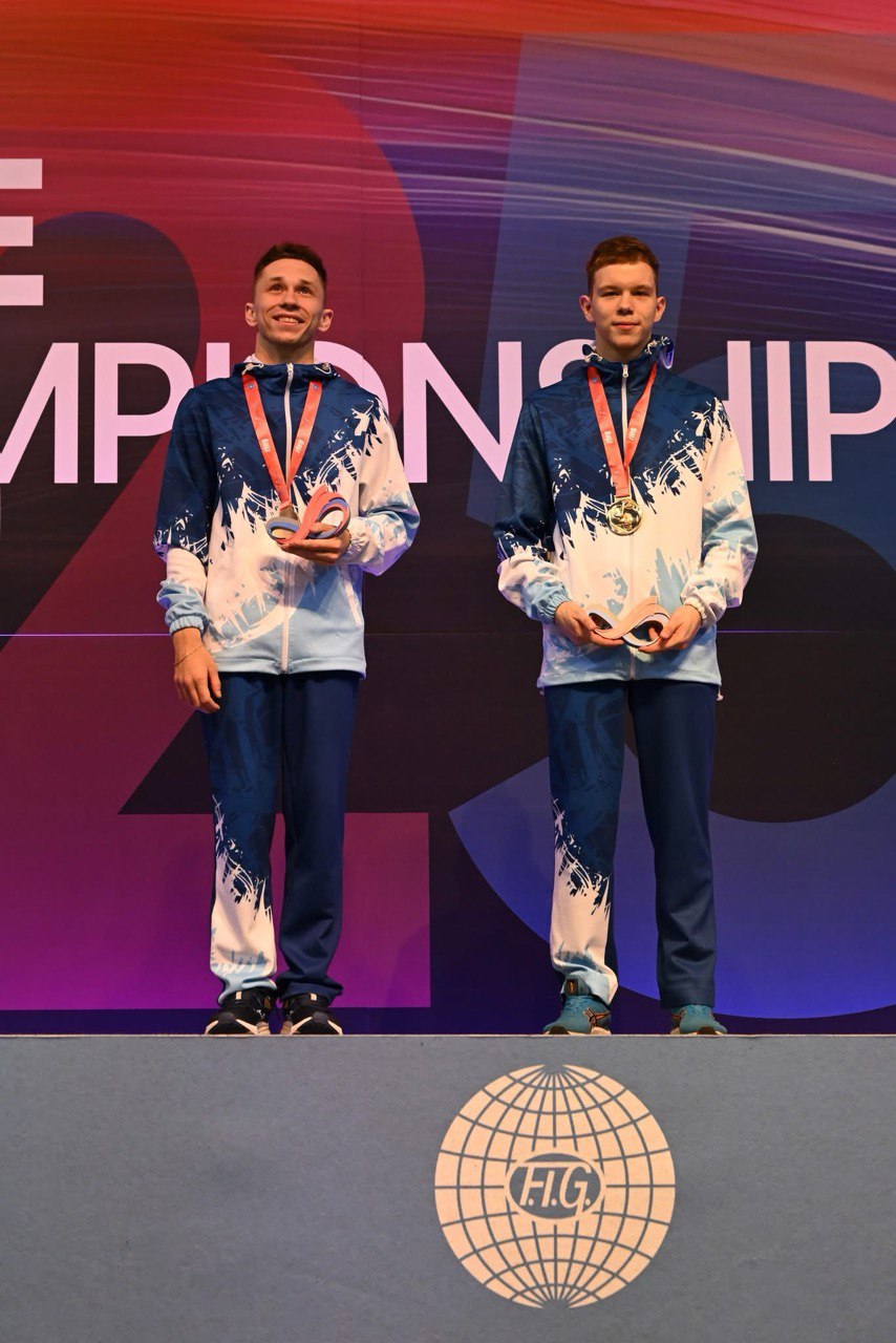 Сердечно поздравляем Вас с успешным выступлением на чемпионате мира по прыжкам на батуте 5-9 ноября 2025 года в г.Памплона (Королевство Испания) в командных соревнованиях, синхронных прыжках среди мужчин и смешанных синхронных прыжках!