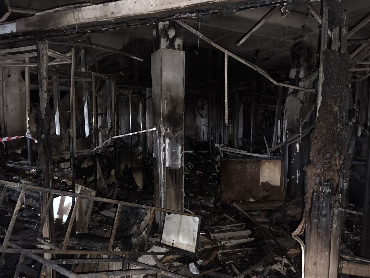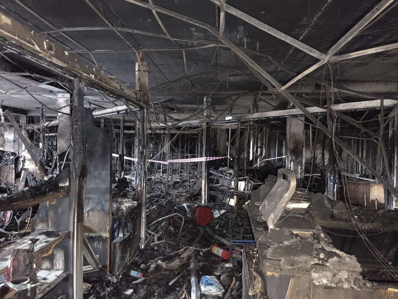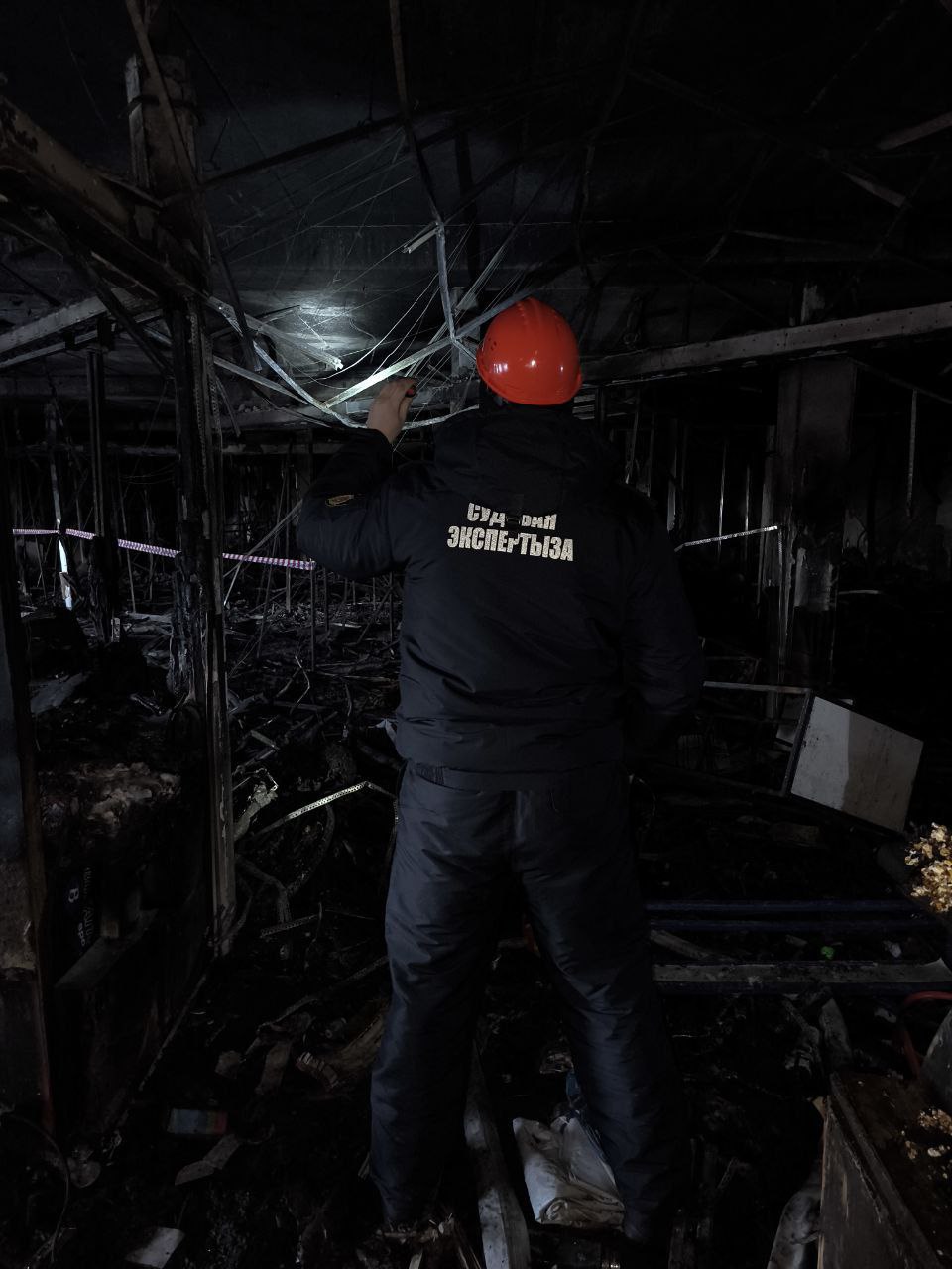 Специалисты ГКСЭ осматривают место происшествия и фиксируют обстановку внутри ТЦ «Беларусь»
