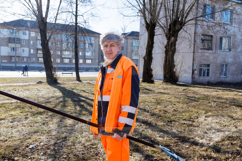 Встречаемся с Татьяной Александровной во дворах обслуживаемых ею домов на улице Гагарина. Здесь прошло уже почти 30 лет ее трудовой биографии. На одном месте. Менялись номера ЖЭУ, нормы обслуживания и многое другое, а она оставалась и остается при своем деле. Сейчас опытный и добросовестный дворник отвечает за чистоту и порядок вокруг почти 30 многоквартирных домов, это два участка. После таяния снега мусора много, поэтому и работы, как всегда, хоть отбавляй.