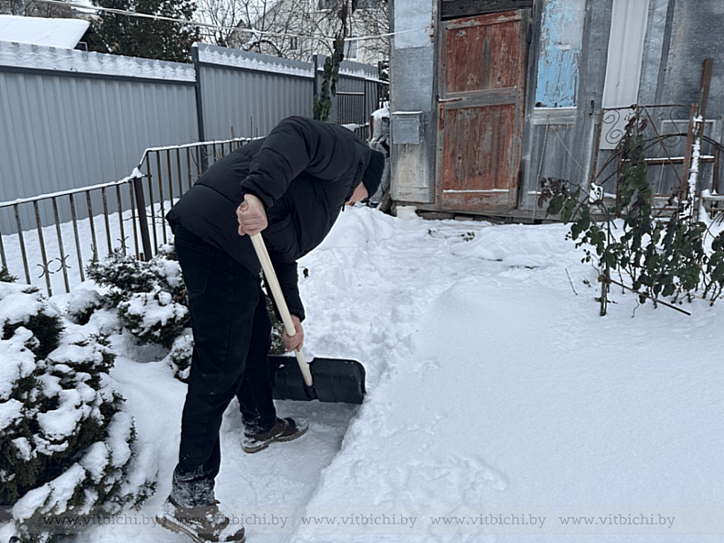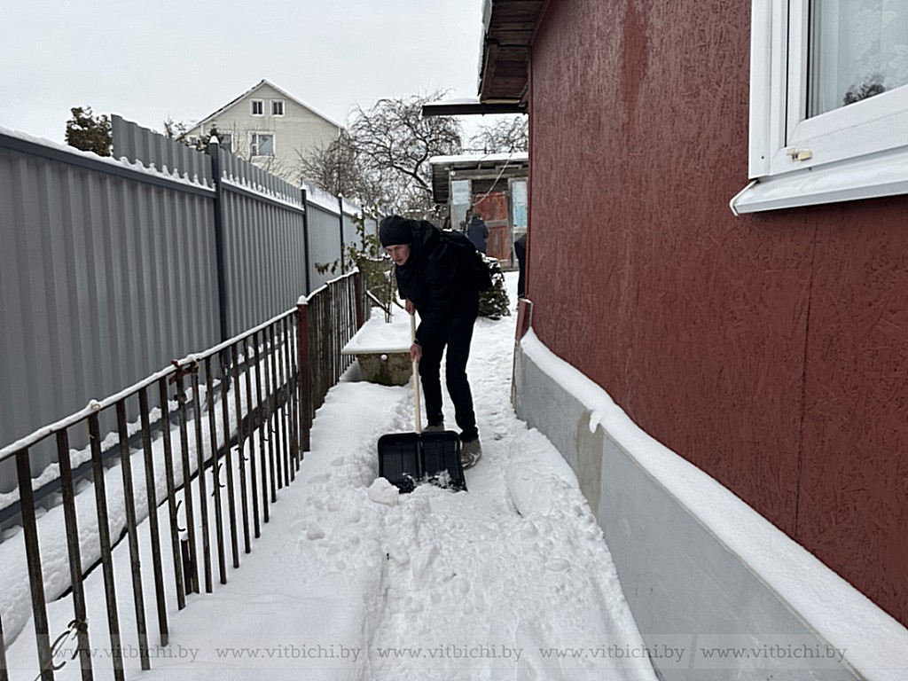 Команда волонтеров Витебского государственного технологического университета во главе с секретарем первичной организации БРСМ Денисом Крощенко помогла с уборкой снега одиноко проживающей витебчанке. После работы волонтеры успели познакомиться и пообщаться с Надеждой Зайцевой, а она тепло поблагодарила их за труд и пожелала успехов в учебе.