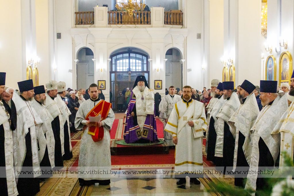 В витебском Свято-Успенском кафедральном соборе состоялся Рождественский молебен, который возглавил архиепископ Витебский и Оршанский Димитрий.