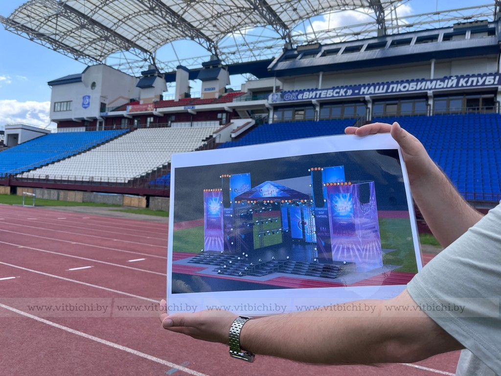 На самом поле появится сцена. Ее проект сегодня презентовали организаторы. Размеры 13 в длину и 10 в глубину.