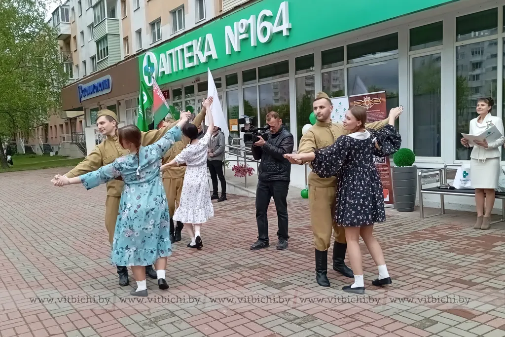 Витебские фармацевты и провизоры, присоединившись к флешмобу «Вальс Победы», провели одноименную акцию на площадке возле аптеки №164 на Московском проспекте, специально оформленной по этому случаю.