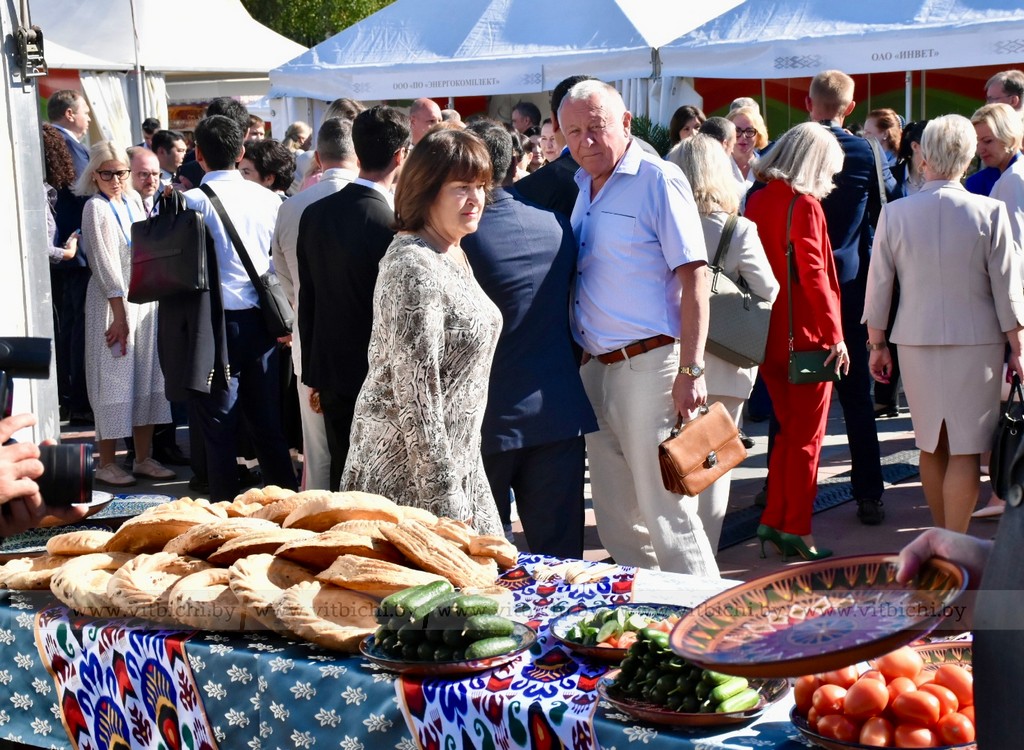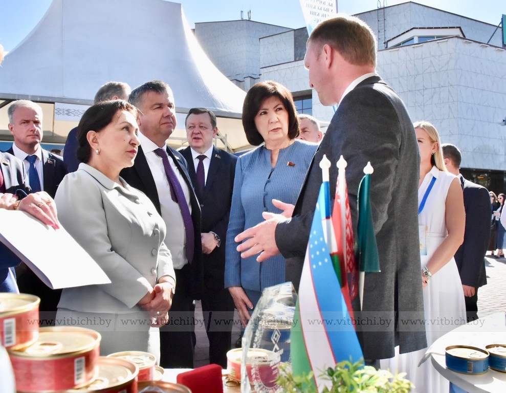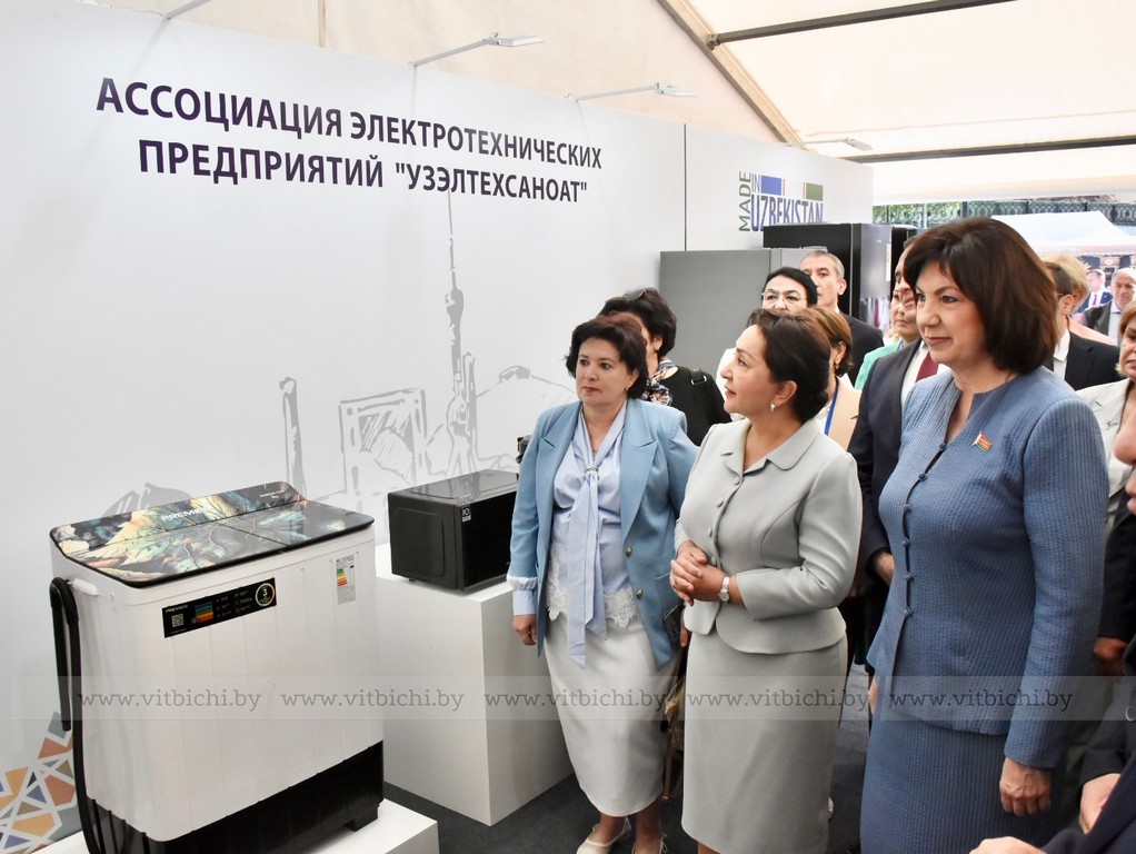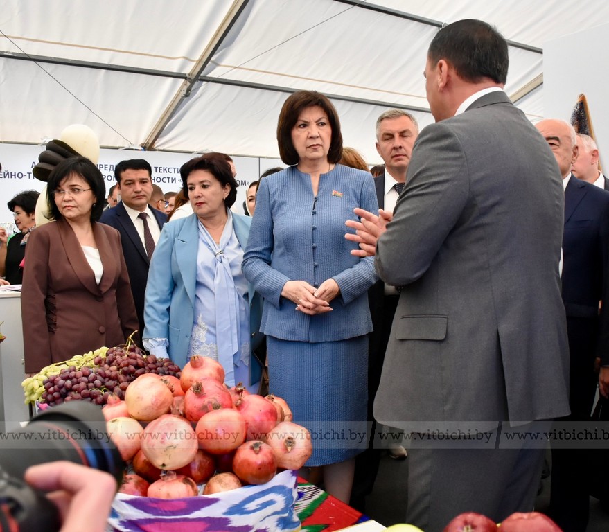 Перед началом пленарного заседания Третьего белорусско-узбекского женского бизнес-форума на тему «Беларусь – Узбекистан: сотрудничество как фактор устойчивого развития» председатель Совета Республики Наталья Кочанова, председатель Сената Олий Мажлиса Танзила Нарбаева, председатель облисполкома Александр Субботин, посетили выставку достижений народного хозяйства регионов Беларуси и Узбекистана.