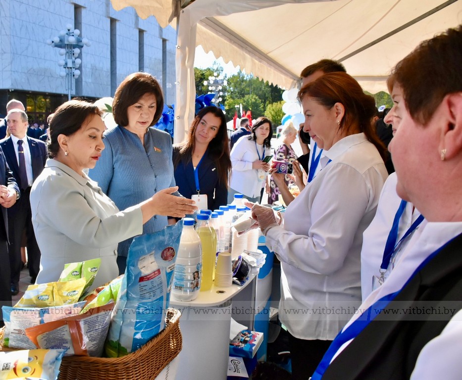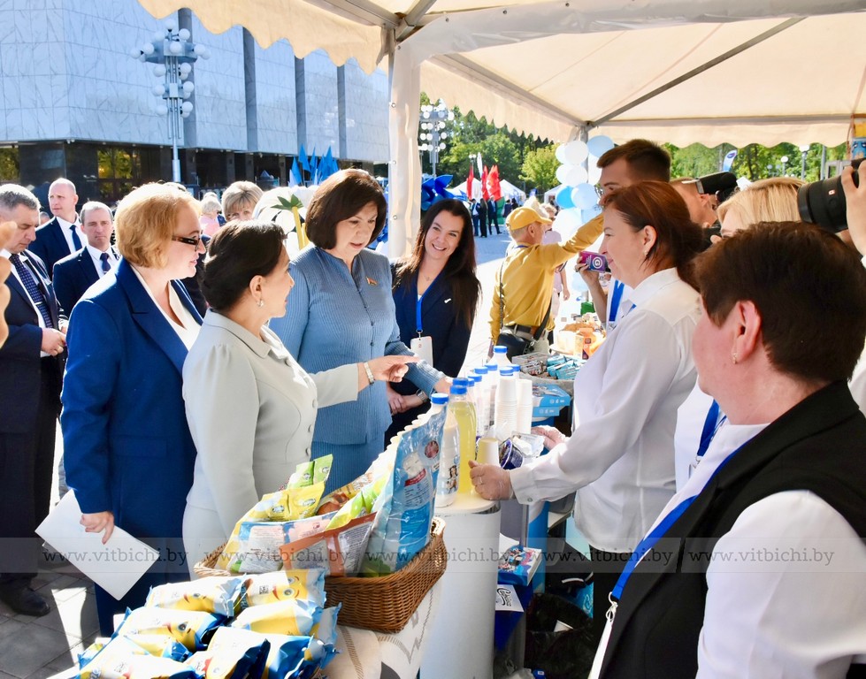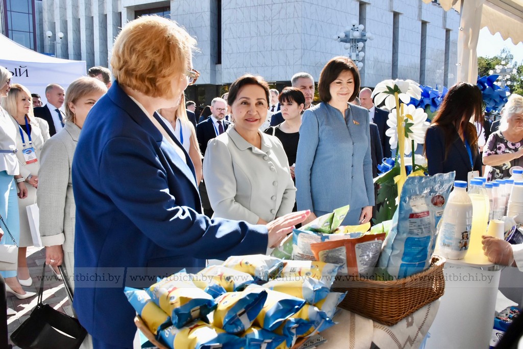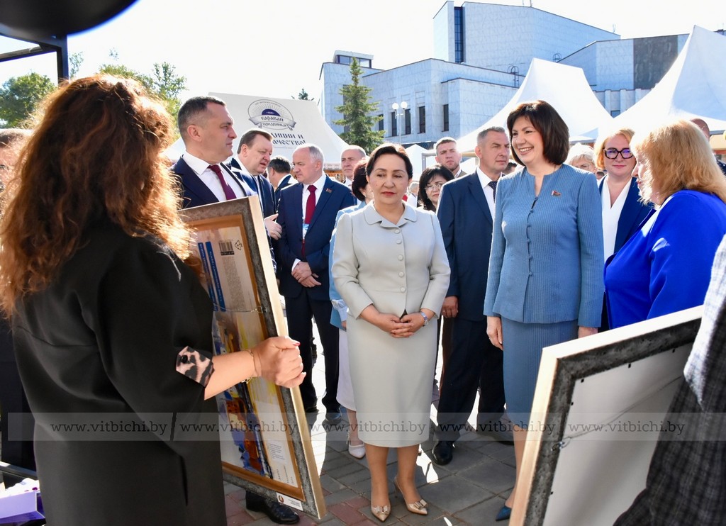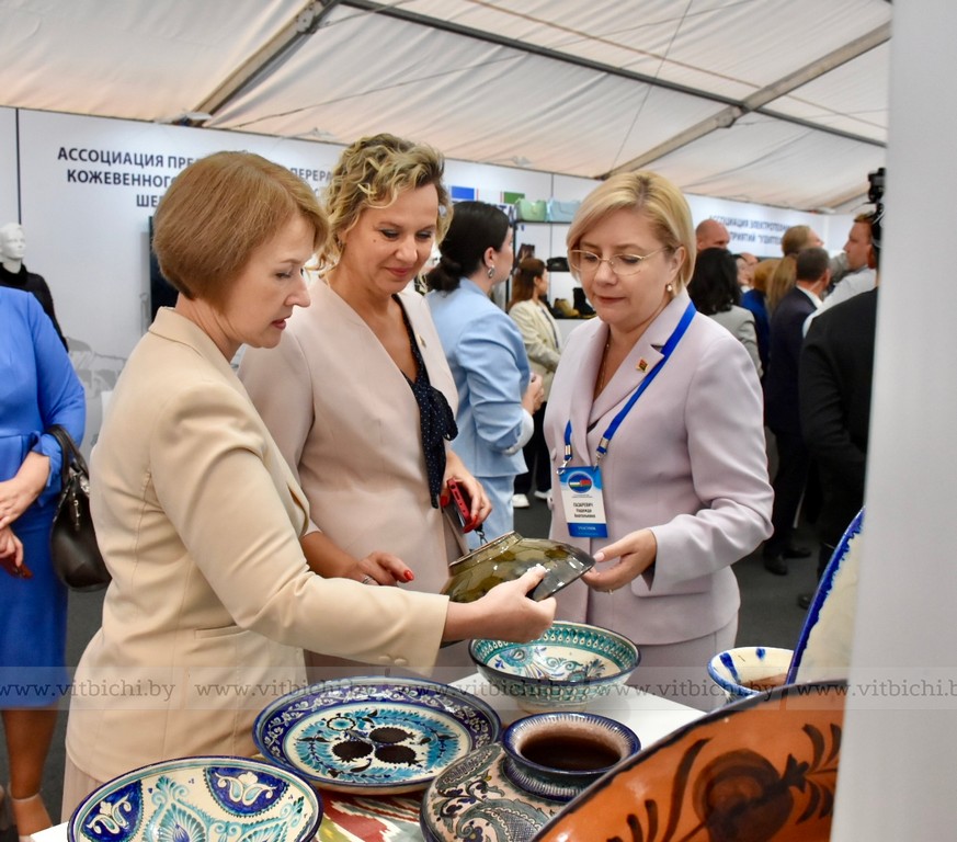 Перед началом пленарного заседания Третьего белорусско-узбекского женского бизнес-форума на тему «Беларусь – Узбекистан: сотрудничество как фактор устойчивого развития» председатель Совета Республики Наталья Кочанова, председатель Сената Олий Мажлиса Танзила Нарбаева, председатель облисполкома Александр Субботин, посетили выставку достижений народного хозяйства регионов Беларуси и Узбекистана.