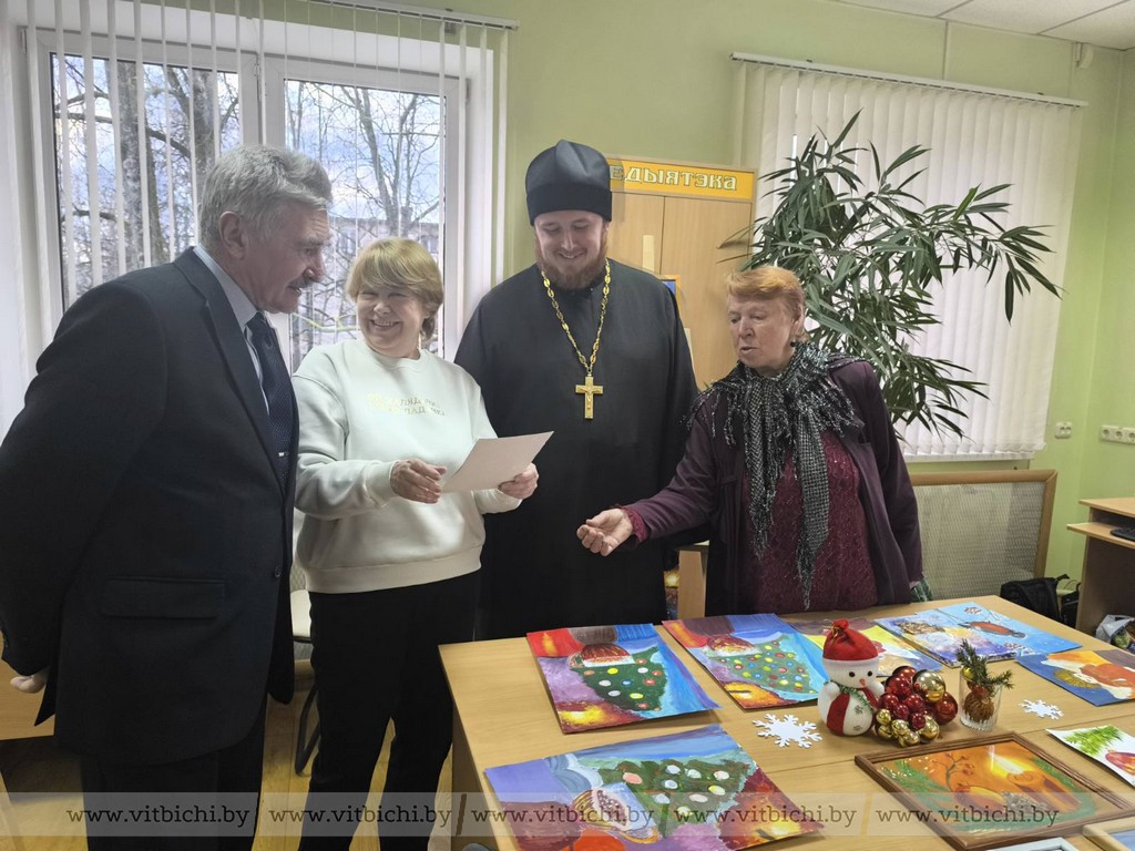 Рождественские мотивы царили не только в танце, но и рисунках, которые рисуют пожилые граждане в кружке "Краски жизни" ТЦСОН Октябрьского района. В рамках рождественского бала и состоялась данная выставка.