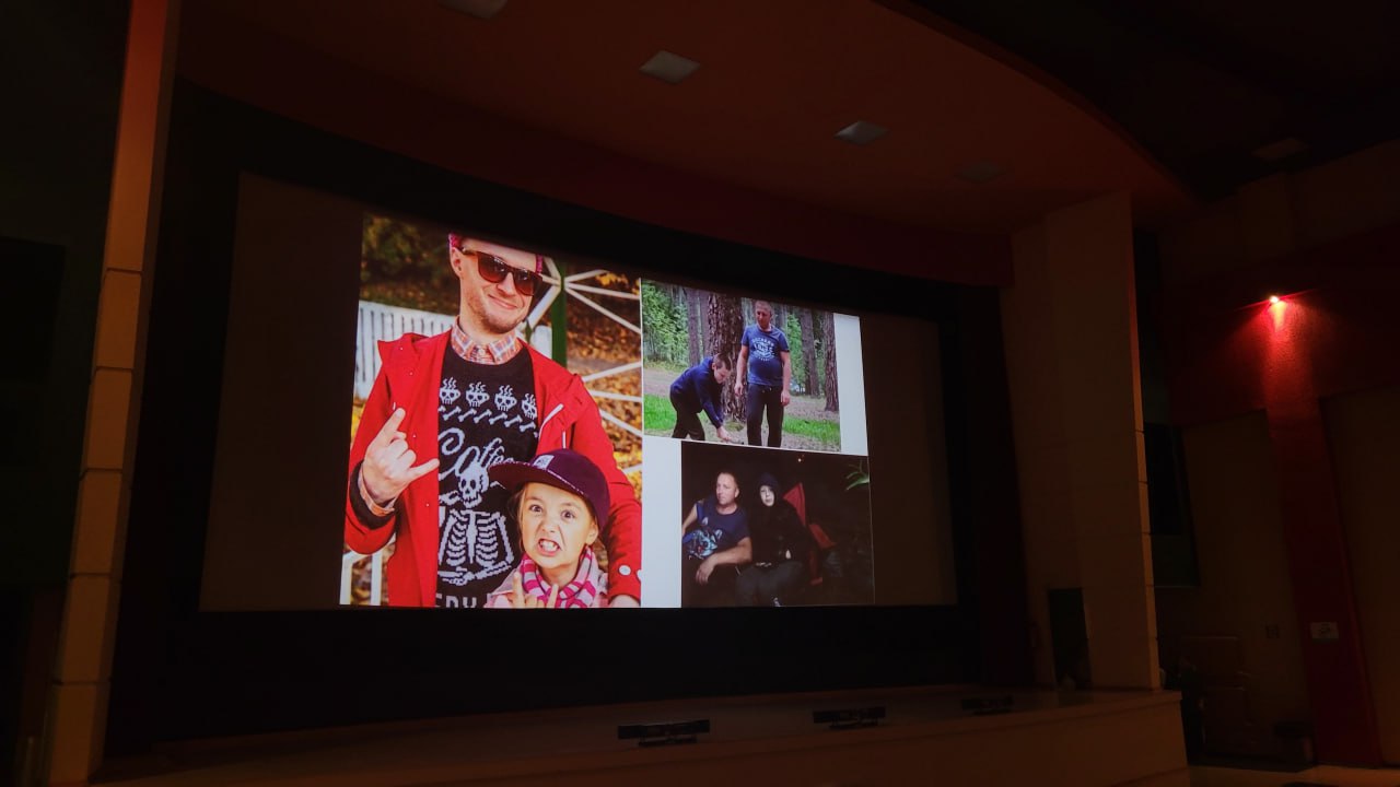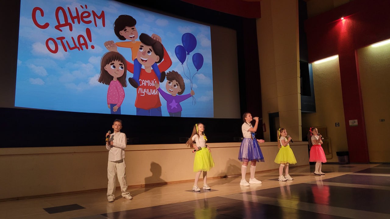 Малыши порадовали своих пап, прочитав стихотворение и исполнив для них песню, а сотрудники Дома кино запустили на экране слайд-шоу из фотографий отцов со своими детками.