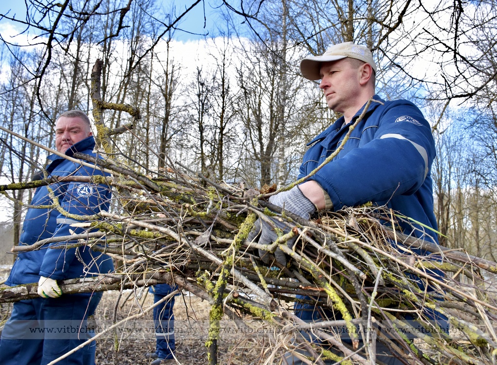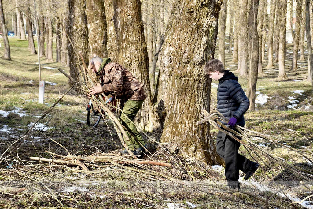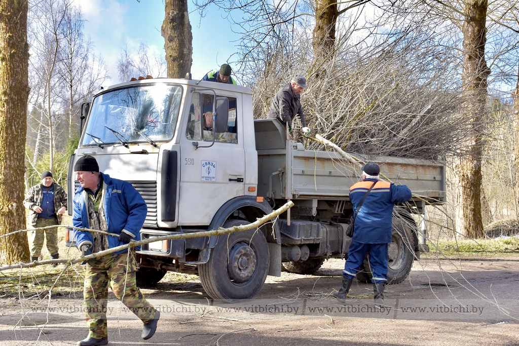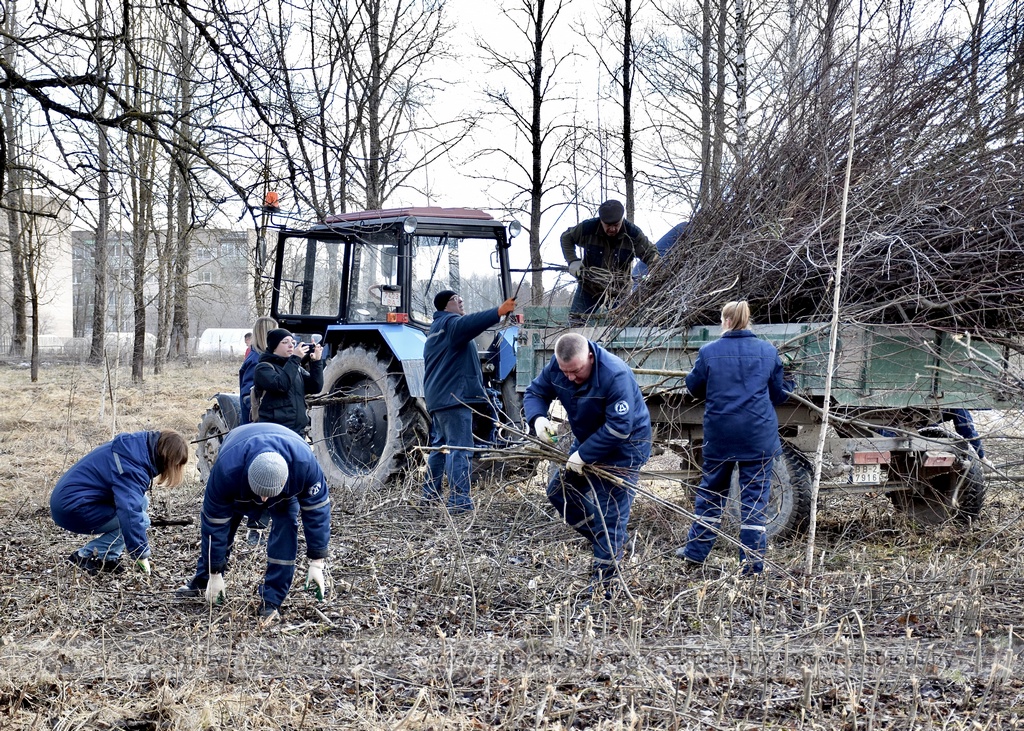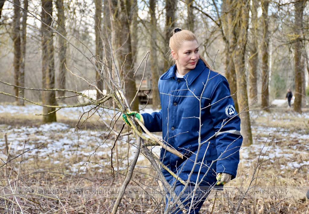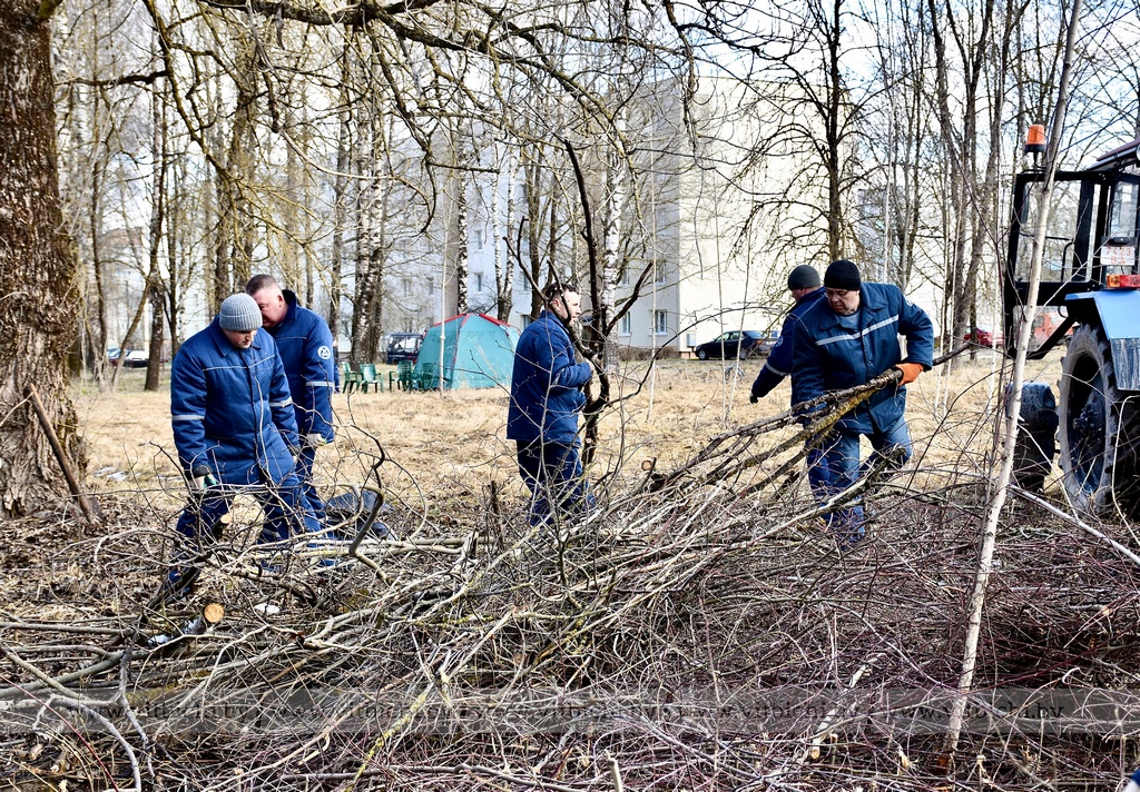 Десант участников субботника (примерно 100 человек) под руководством главы администрации Железнодорожного района г. Витебска Александра Сысоева благоустраивал парк, расположенный напротив здания заводоуправления ОАО «Доломит», где протекает речушка Рубовский Дунай.