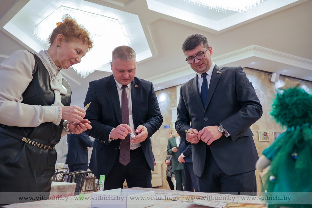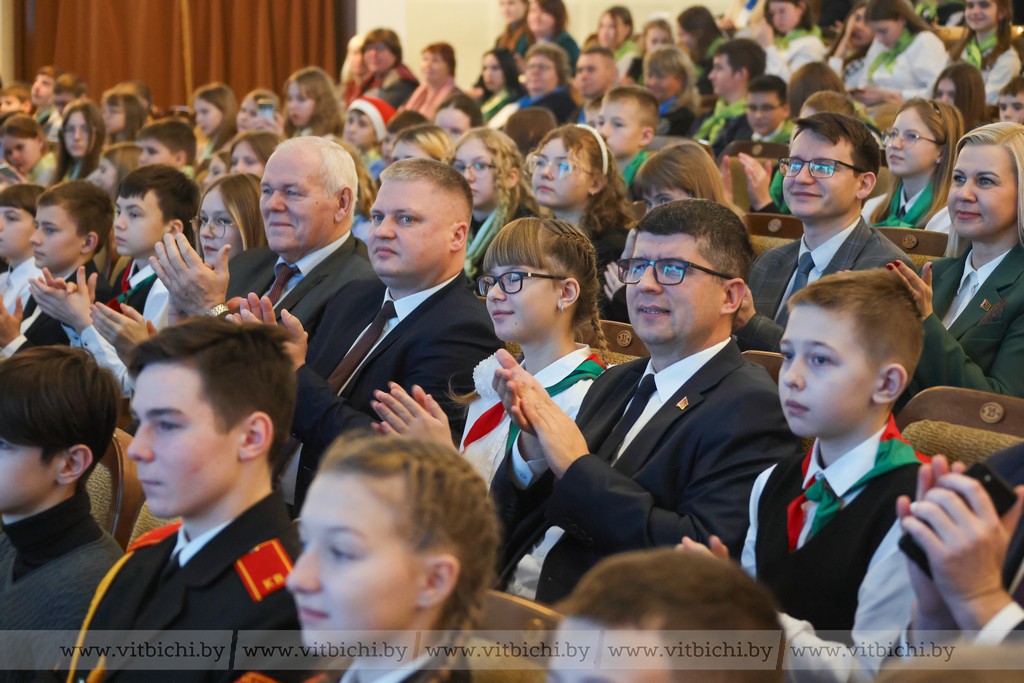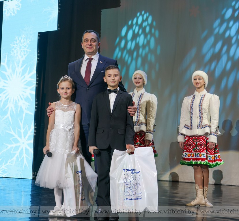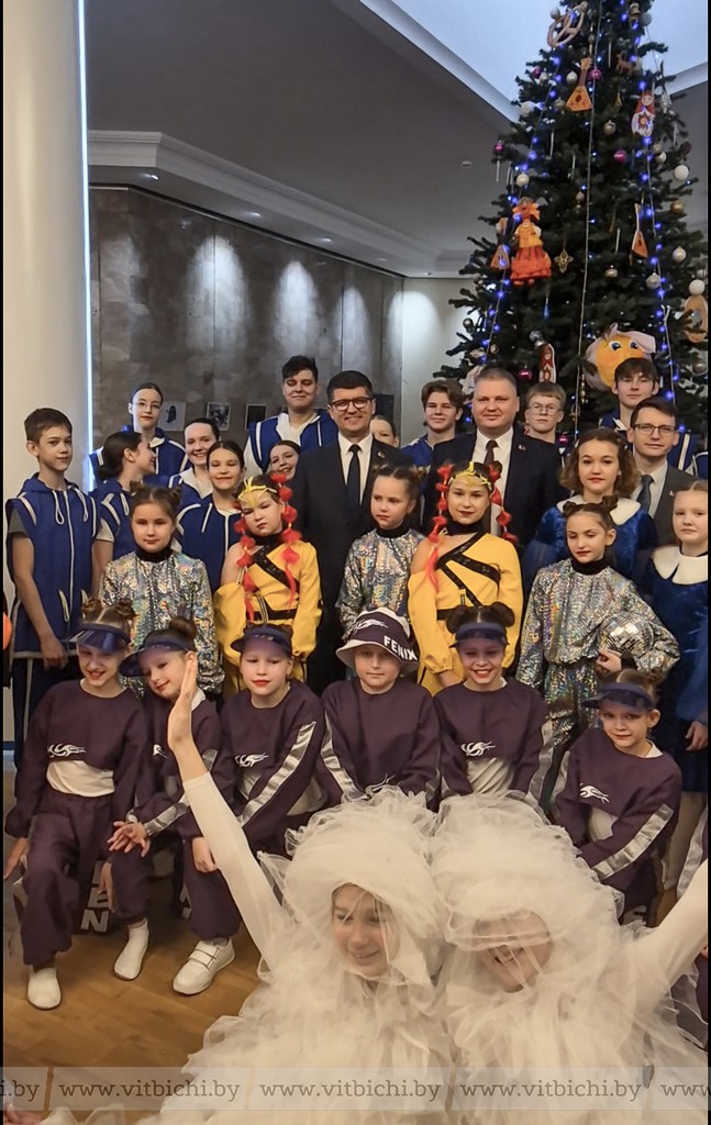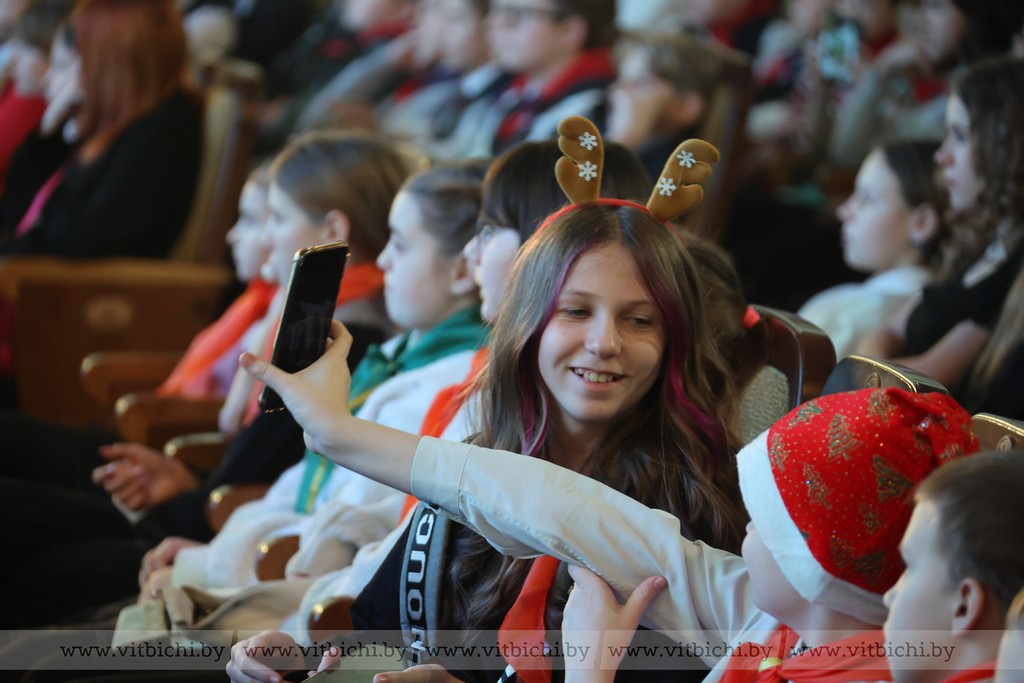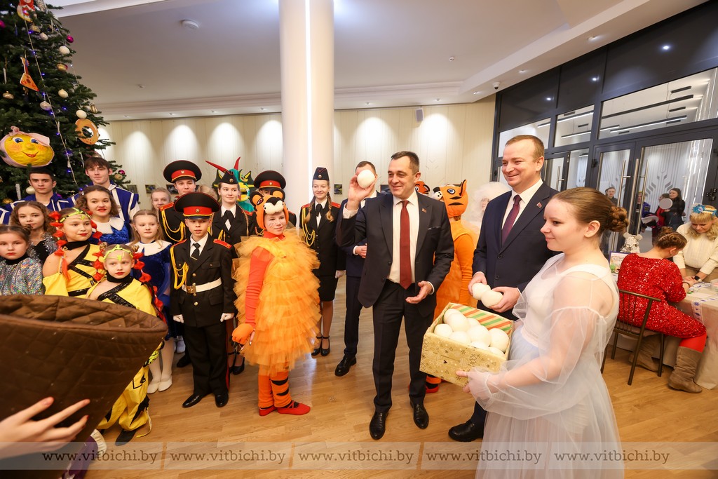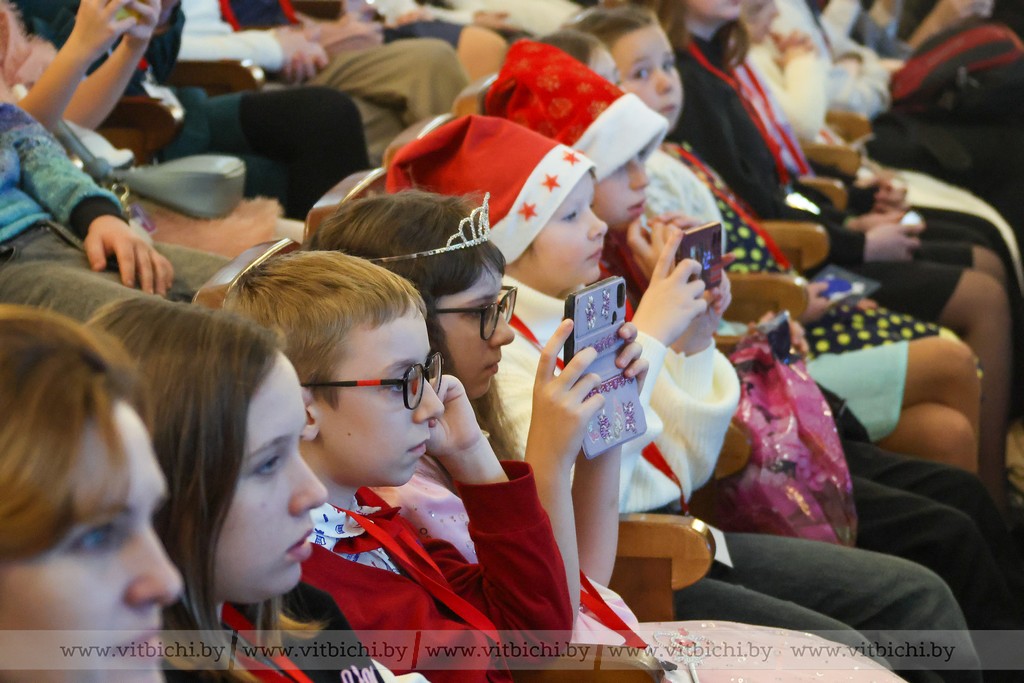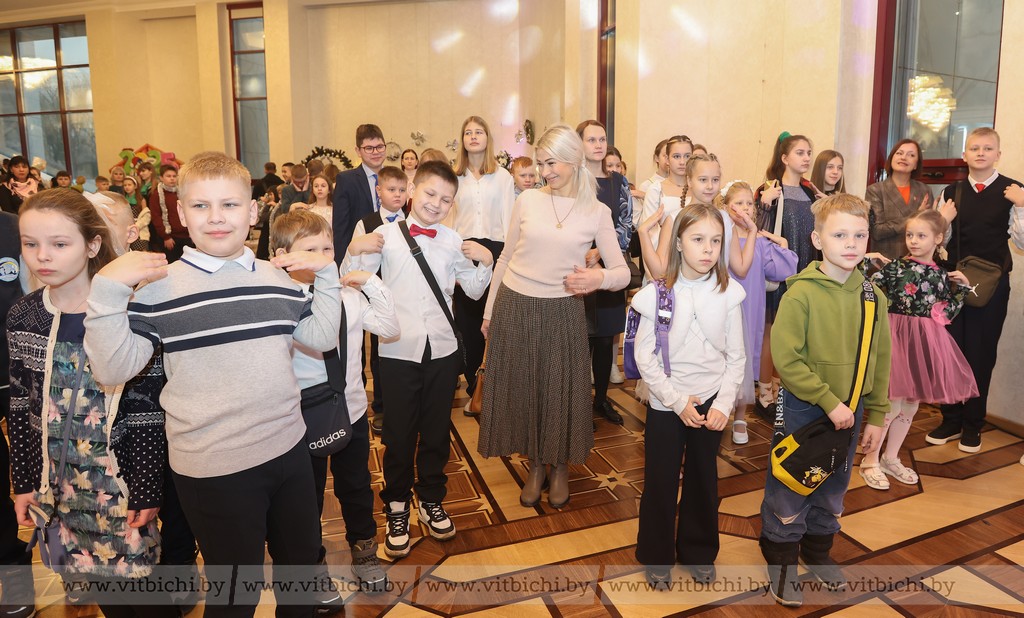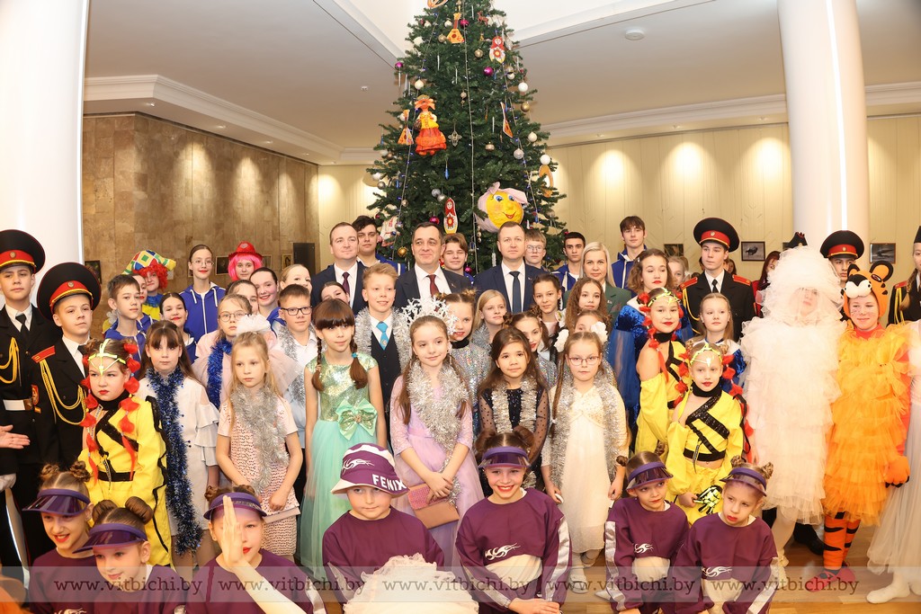Помощник Президента – инспектор по Витебской области Сергей Левкович, председатель горисполкома Алексей Героев вместе со школьниками также окунулись в волшебную атмосферу новогоднего праздника, где все, даже взрослые чувствовали себя немножко детьми.